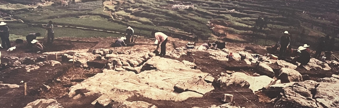 普安铜鼓山遗址群主要分布在普安县青山镇,包含铜鼓山、大坡等12处遗址,以普安铜鼓山遗址为代表。铜鼓山遗址1980年、2002年两度较大规模发掘,发掘面积超2300平方米,清理出房址、窑址、灰坑、柱洞等遗迹,出土遗物丰富,其中包含一批铸造青铜兵器和小型工具的石范和陶模,表明这是一处以青铜冶铸为主的作坊遗址。