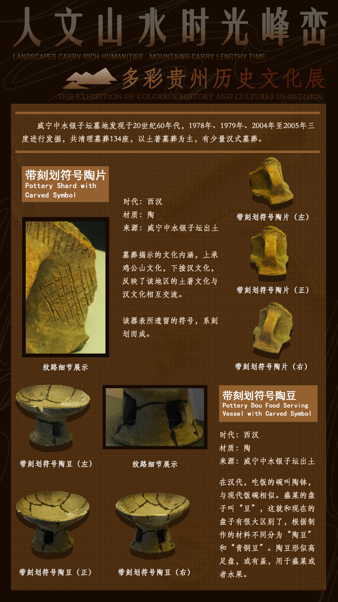 正是因为商周时期鸡公山文化的兴起,也使得威宁中水整片地区之后的遗址都附带着鸡公山文化的影子。因此,这一片银子坛墓地遗址,它的文物呈现为上接鸡公山文化,下接汉文化,中间贯穿着夜郎文化特点,反映了该地区的土著文化与汉文化相互交流。