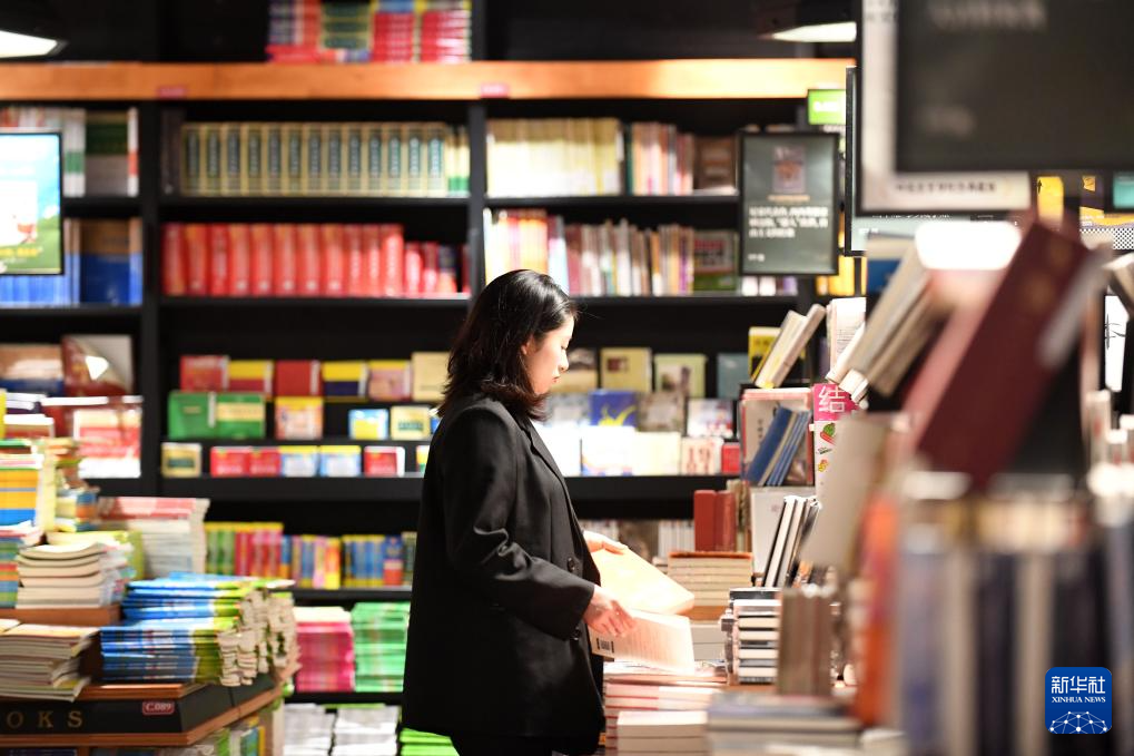 4月21日,顾客在贵州省仁怀市西西弗书店选择书籍。新华社发(陈勇摄)
