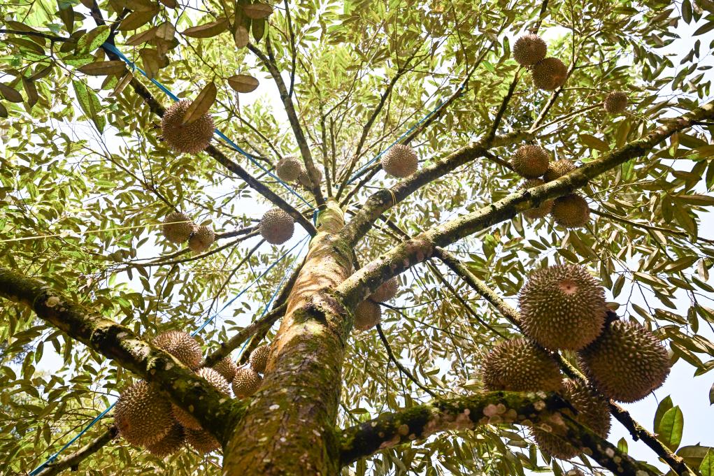 马来西亚彭亨州的劳勿是榴莲重要产区之一。依托独特的土壤环境与热带雨林气候,这里的猫山王、黑刺等榴莲品种果肉绵密、风味浓郁,在国际市场素有美誉。往年,劳勿榴莲产出的一大部分会通过跨境冷链直供中国市场。如今在两国航线不断增加的前提下,实现了榴莲自然成熟落果收获后,最快36小时送到中国消费者手中。