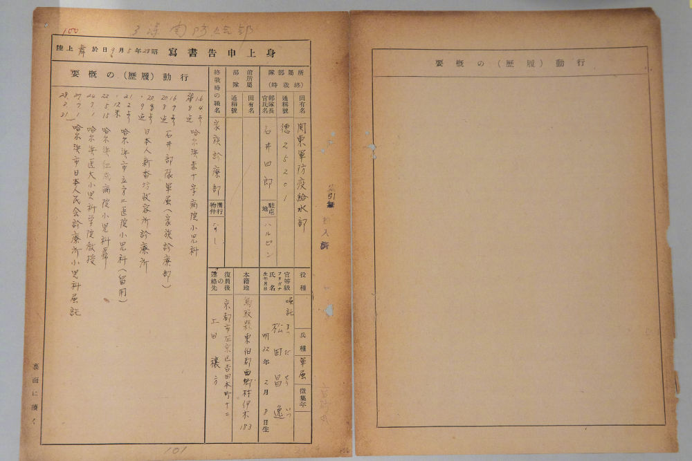 侵华日军第七三一部队罪证陈列馆4日公布一批新档案,名为七三一部队本部《身上申告书》,共69页,记录着二战后52名七三一部队队员的详细信息。专家认为,这是研究七三一部队的重要一手史料,是其规模形制、人员流转、协同犯罪、战后轨迹和战争责任等问题的关键证据,对于深化日本细菌战研究意义重大。