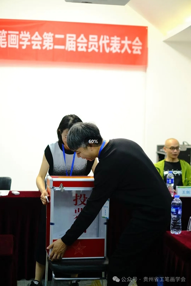 会议顺利完成了各项议程,通过了《章程》修改草案,选举产生了第二届理事会和领导班子。王锦霞当选贵州省工笔画学会第二届理事会会长,蒋鸿斌、姜琦、李川、王剑云、伍国春、文桂海、肖蓉成、徐飞、 钟应举当选副会长。会议任命栗嘉忆为秘书长,刘雅为副秘书长。(以上任职经业务主管单位和注册管理单位批准备案后生效。)此次大会开启了贵州省工笔画学会发展的新征程。