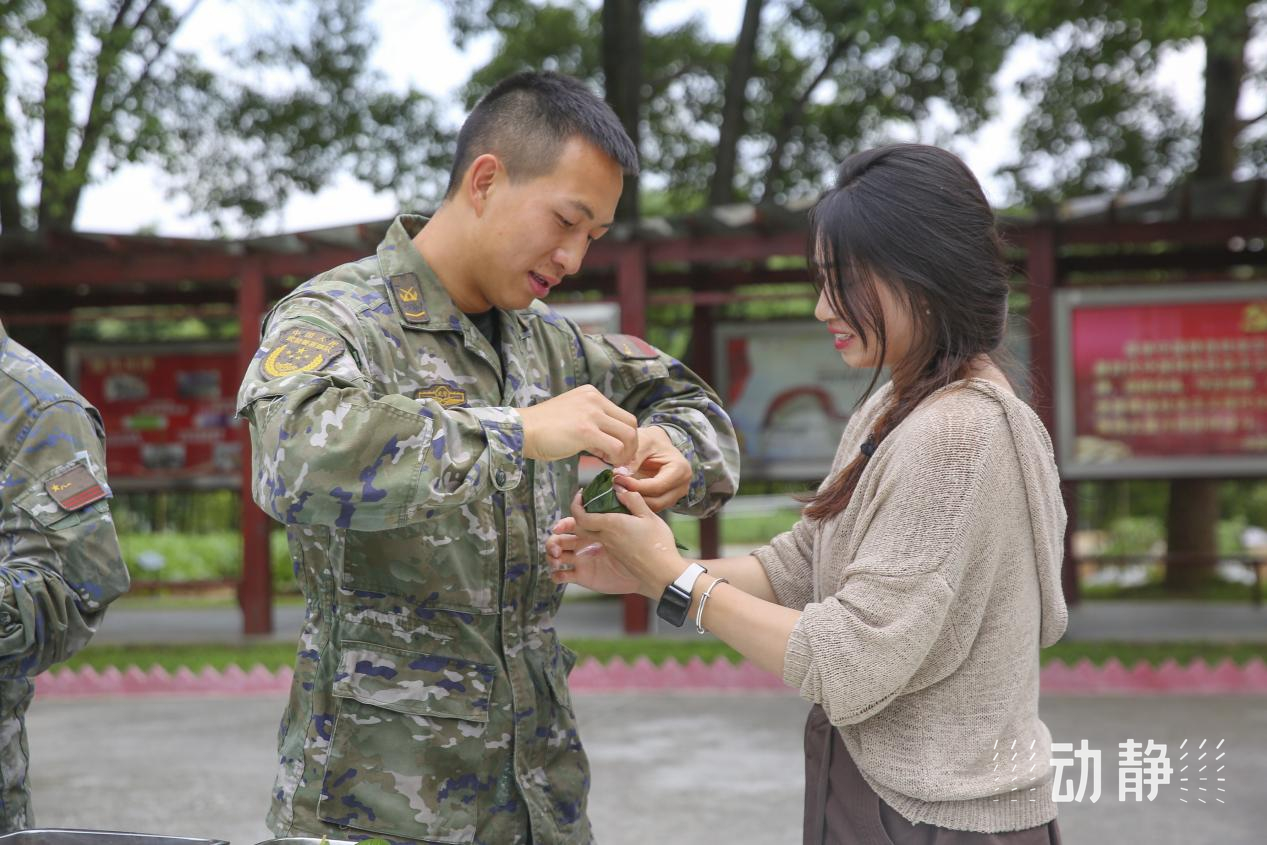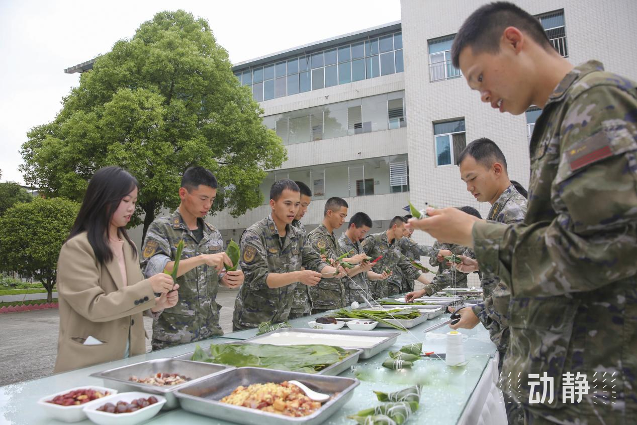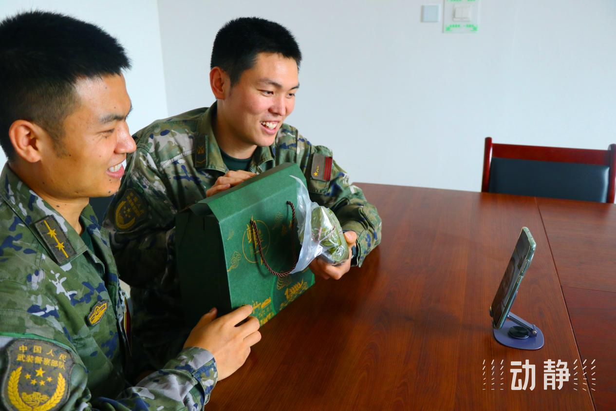 在武警贵州总队遵义支队,来自五湖四海的战士们围坐在一起,折叶、盛料、扎绳,包好一个个粽子,通过视频与父母分享自己的劳动成果,并将亲手包的粽子打包寄回家,向远方的亲人送去祝福。