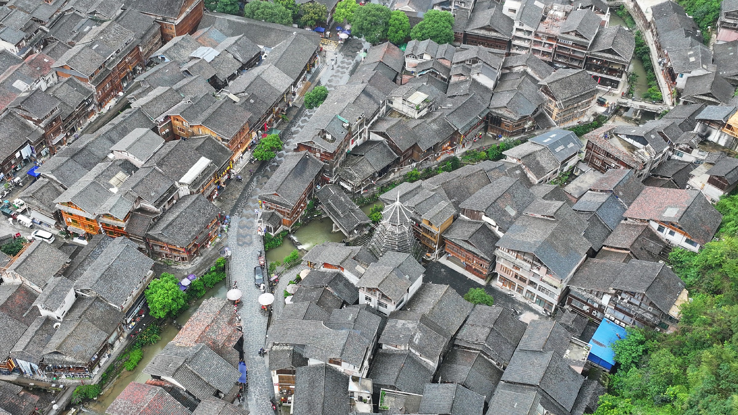 初夏的细雨悄然而至。在贵州省黔东南州黎平县肇兴镇,下了一夜的小雨没有停歇,在给万物雨水滋润的同时,也把天空和地表都清洗了一遍。