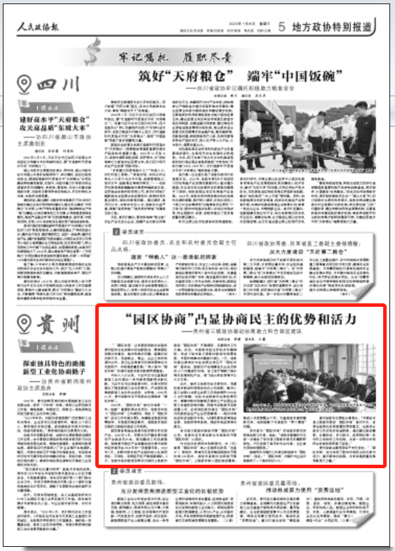 贵州省委主要领导给予充分肯定:“‘园区协商’充分体现了政协协商民主的优势与活力,望不断深化拓展,为我省高质量发展贡献更大力量。”