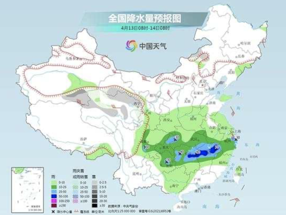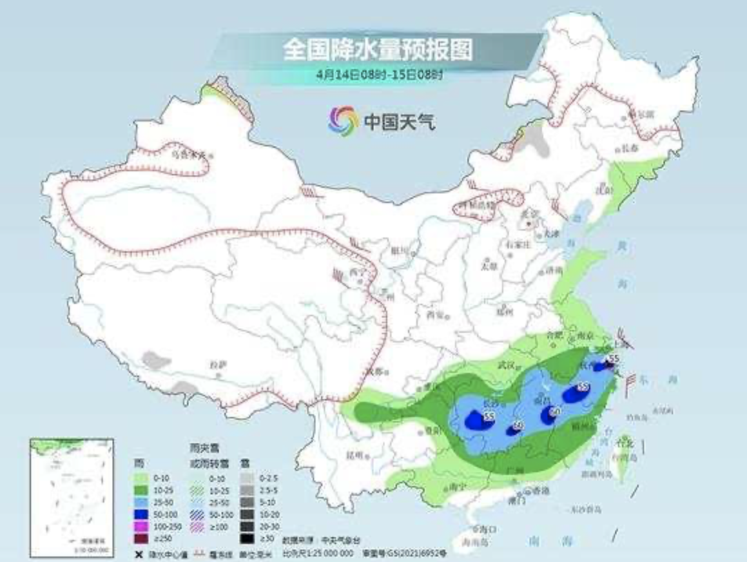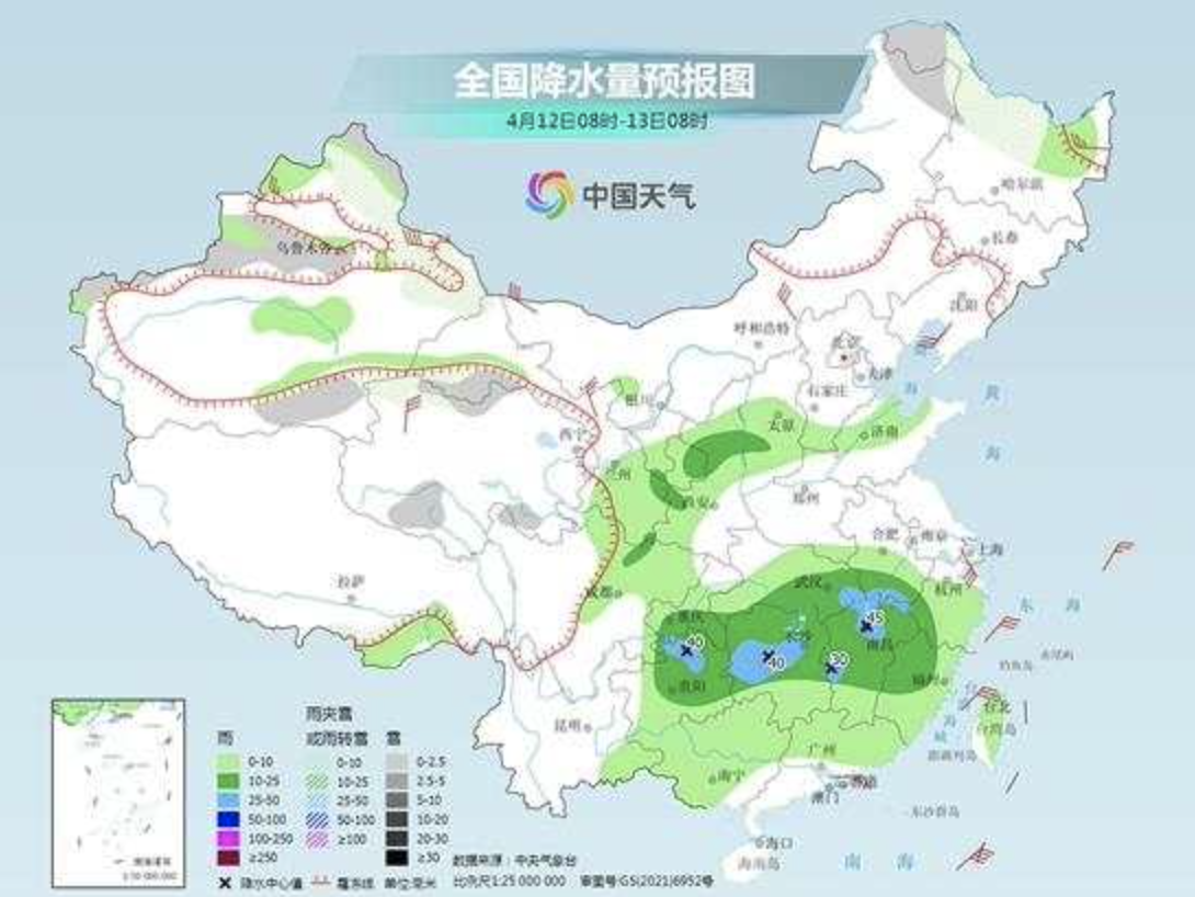 具体来看,中央气象台预计,今天内蒙古东北部、黑龙江西北部、新疆沿天山地区、青海北部和南部等地部分地区有小雪或雨夹雪。黑龙江东北部、新疆南疆盆地、西北地区东南部、华北中南部、黄淮东部、江淮西南部、江汉大部、江南、西南地区东部、华南大部、台湾岛等地部分地区有小到中雨,其中,安徽西南部、湖北东部、湖南中部、江西中北部、贵州东北部等地部分地区有大雨(25~45毫米)。
