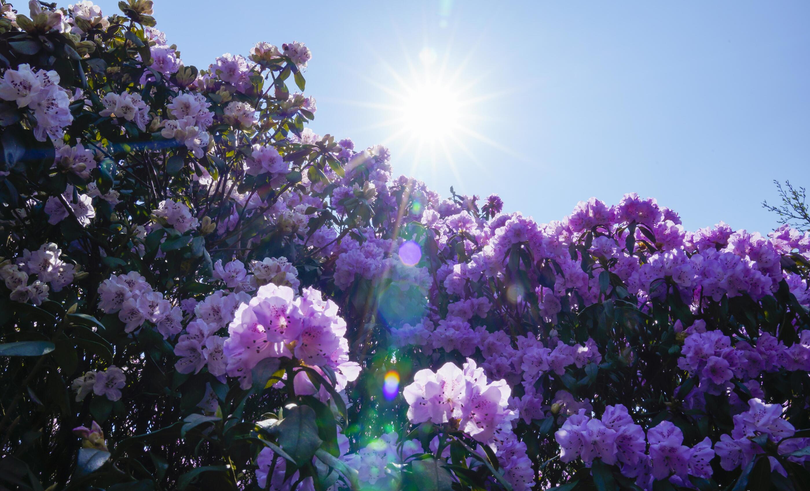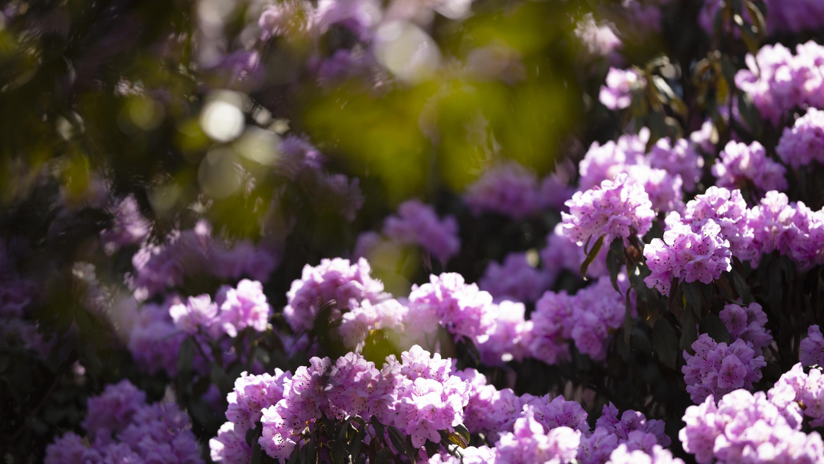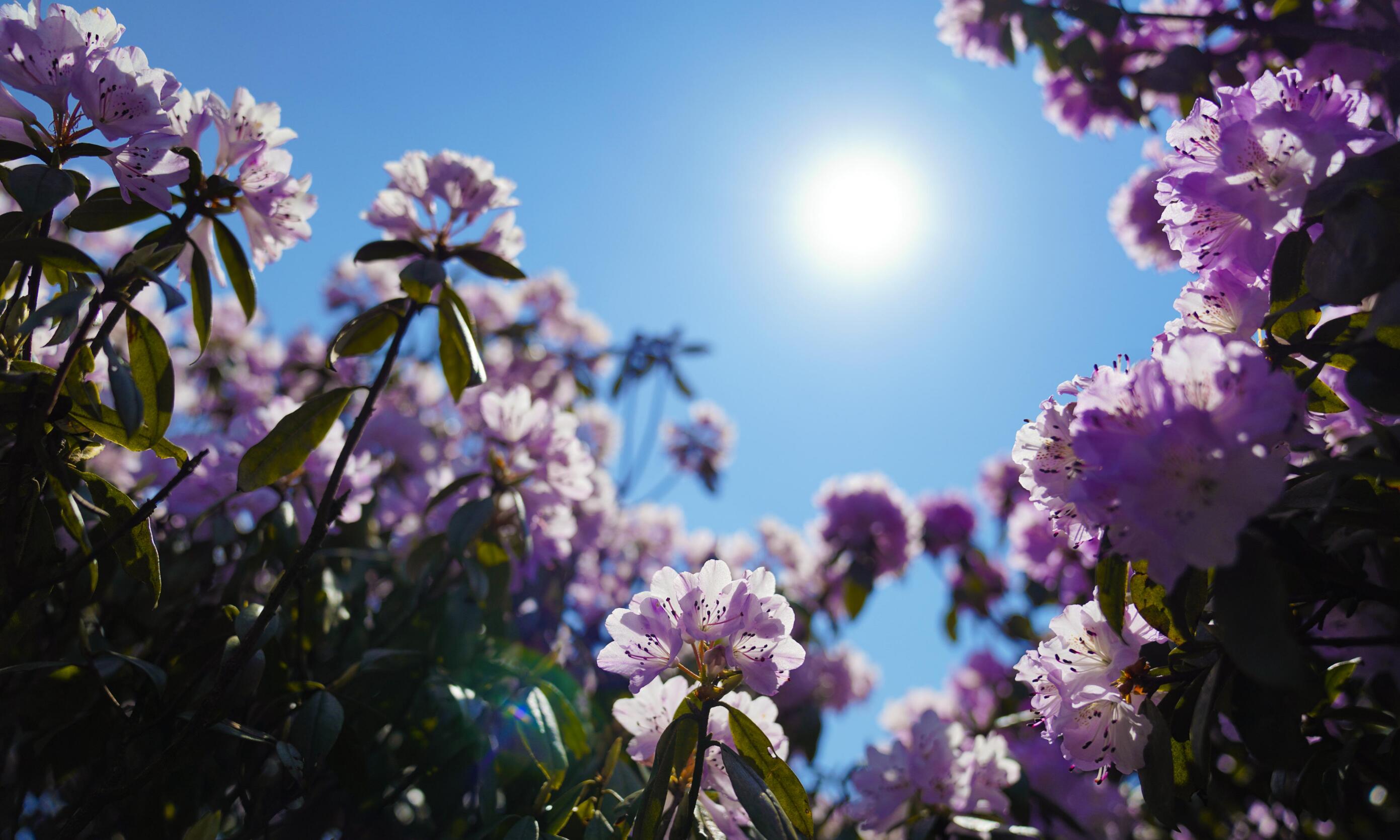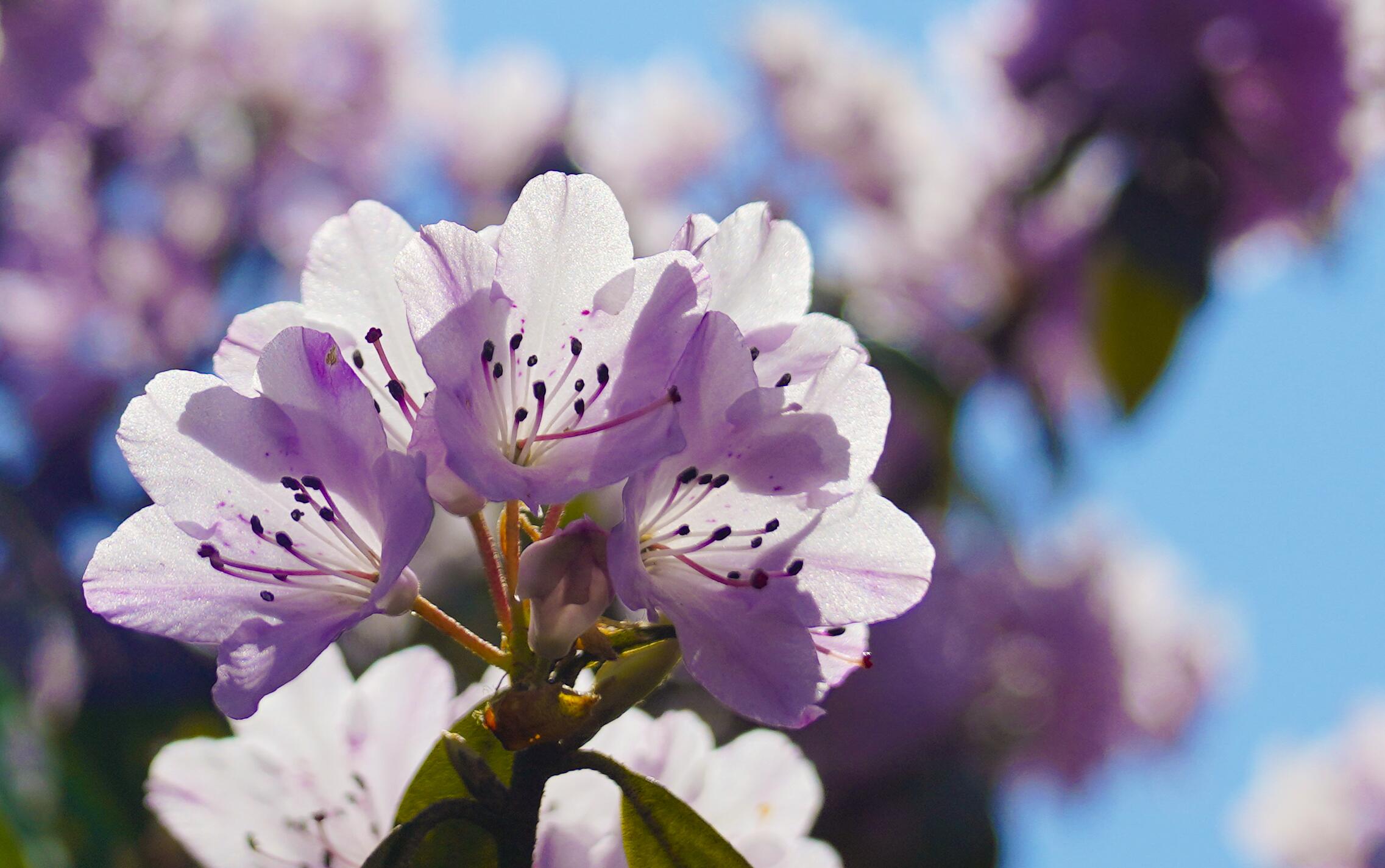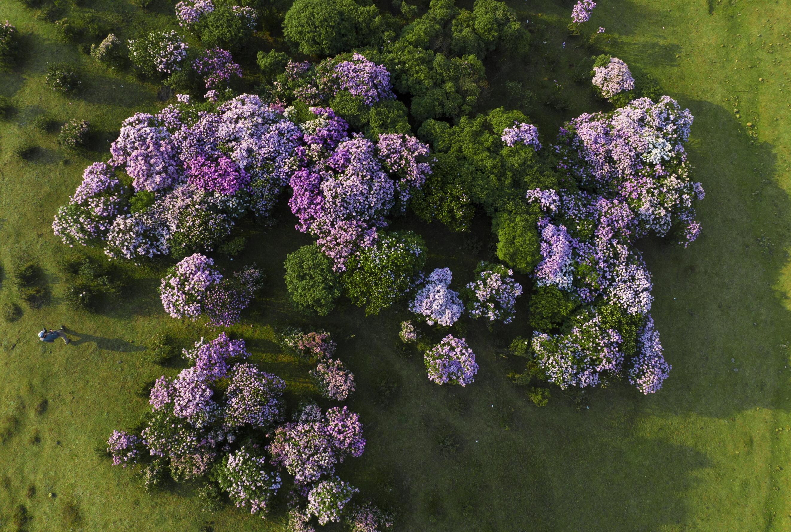 除了腋花杜鹃外,在乌蒙大草原最高峰的牛棚梁子,一簇簇红棕杜鹃在高山盛开,这里上千亩的红棕杜鹃树冠矮的有2-3米,高的有10米,树叶跟花朵顶生成伞形,淡紫色、紫红色、玫瑰红色、淡红色等丰富的花色,五彩斑斓,格外艳丽。繁盛的杜鹃和纯净的草原,绘就了一幅难得的千里画卷,惊艳了乌蒙大草原之巅。