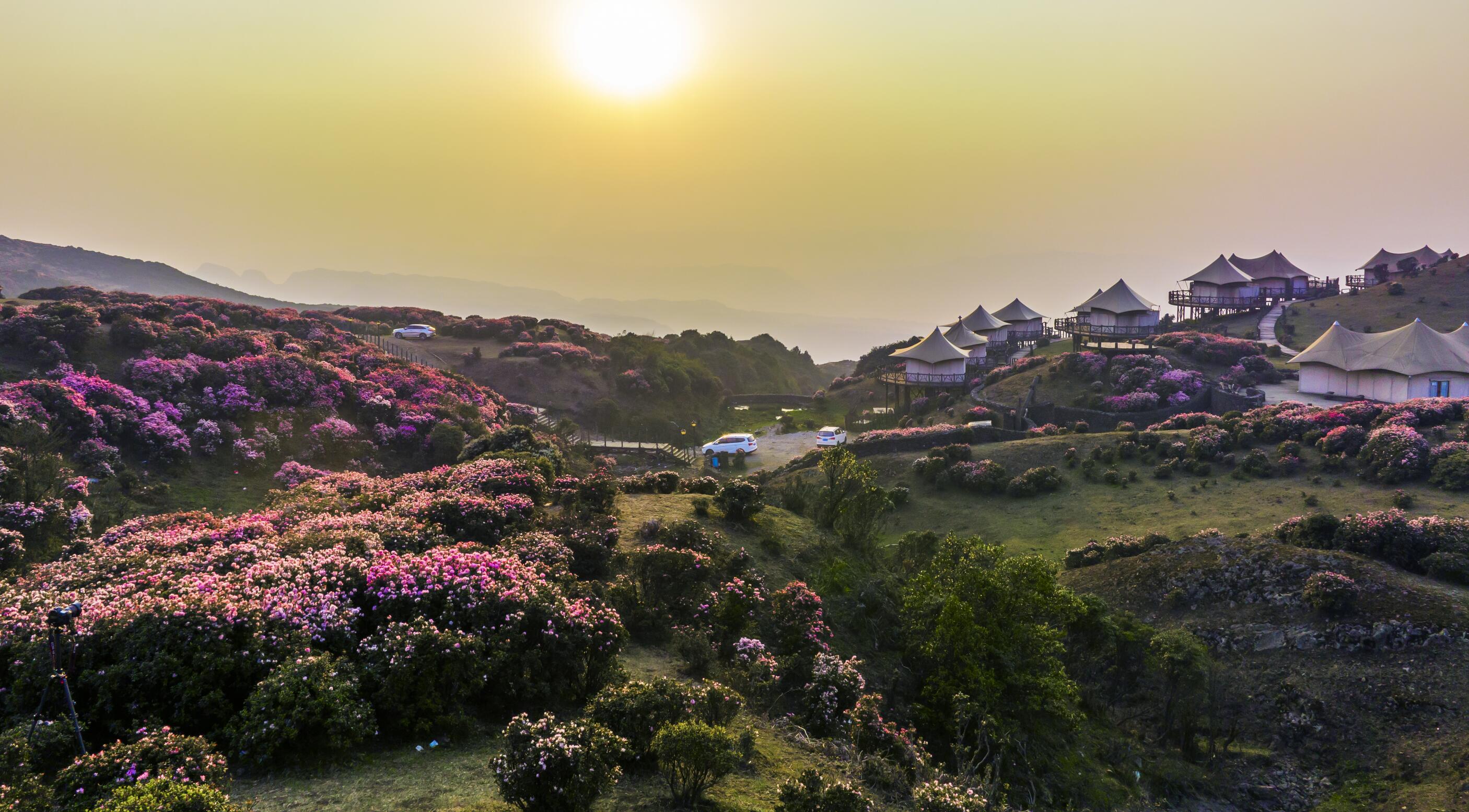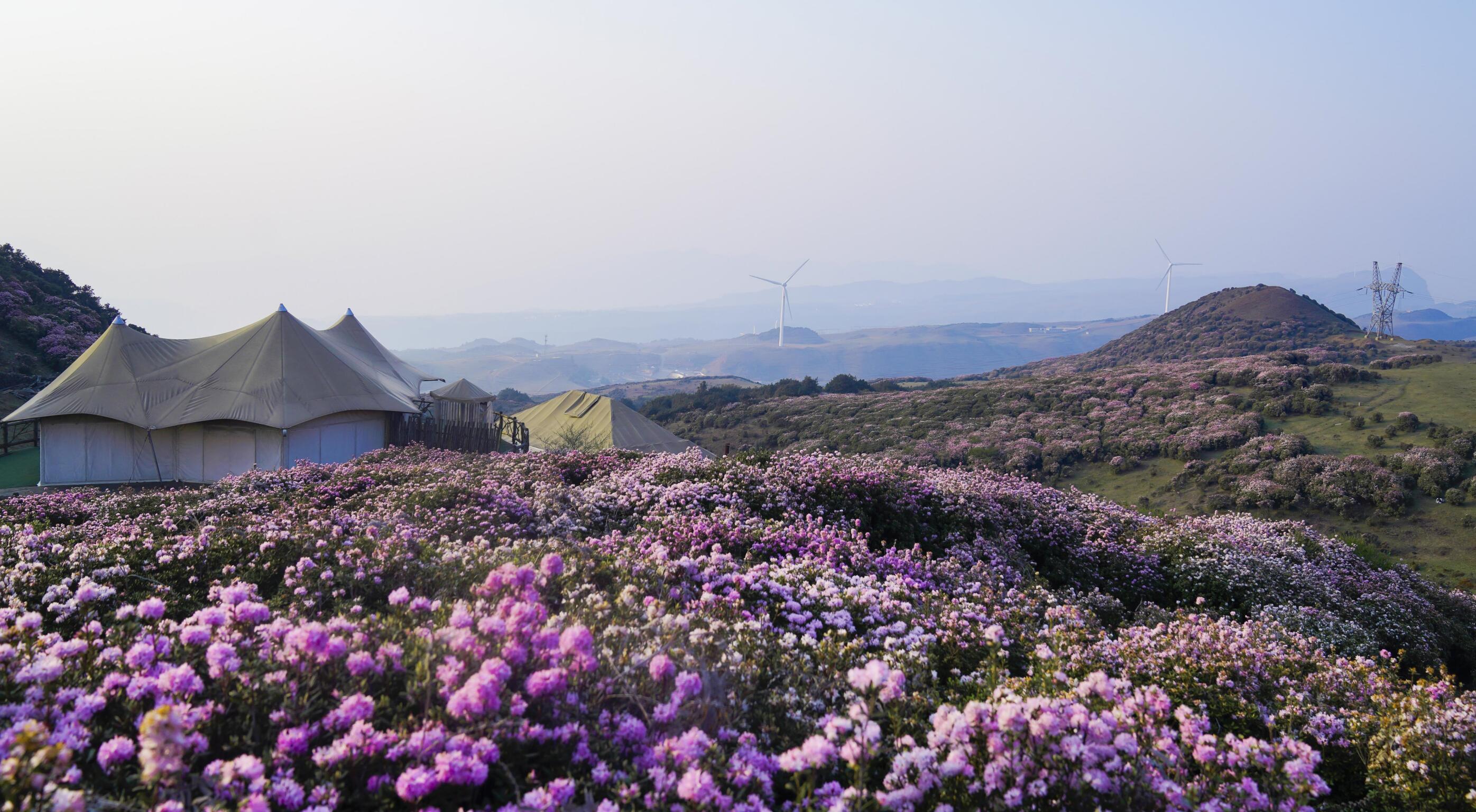 每到春天,盘州市乌蒙大草原4万亩高原矮杜鹃(腋花杜鹃)相继绽放,整个高山草原成了花的海洋,吸引着全国各地游客慕名而来。