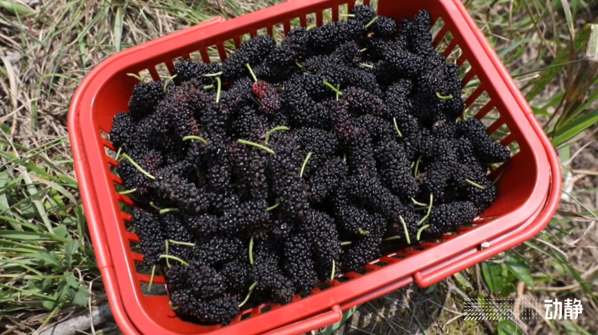 美味的桑葚,吸引着周边的游客,他们手提果篮,精心挑选每一颗味蕾的诱惑。