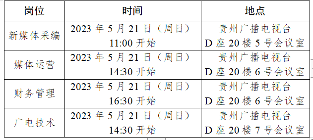 2.媒体运营、财务管理、广电技术岗位的复试人员在参加完上午的实操测试后,可自行离开,待下午面试开始前30分钟再进入考场。