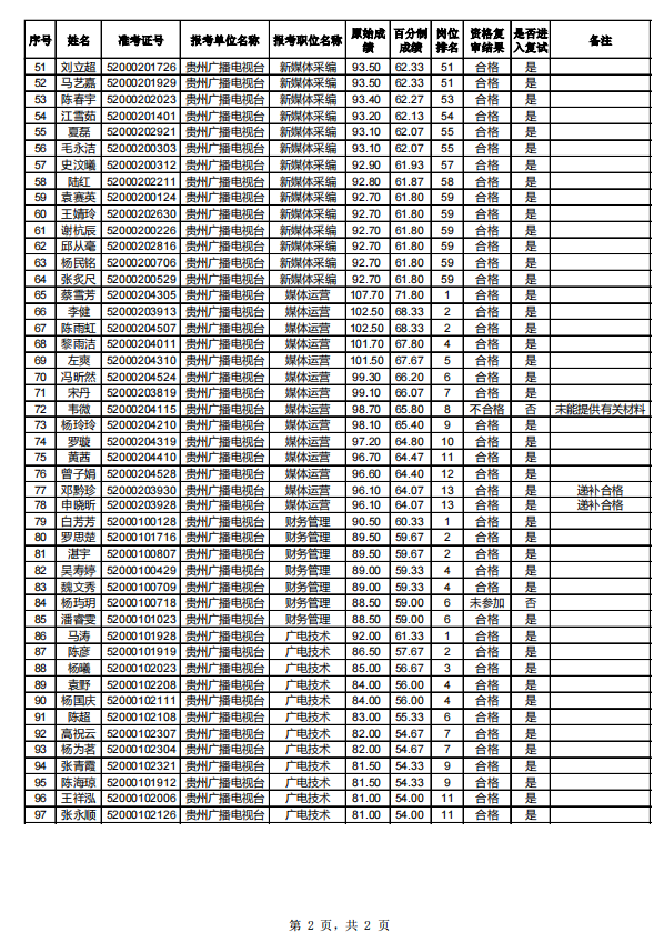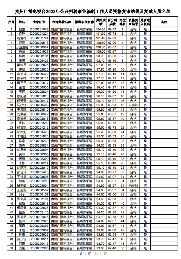 附件:贵州广播电视台2023年公开招聘事业编制工作人员资格复审结果及复试人员名单