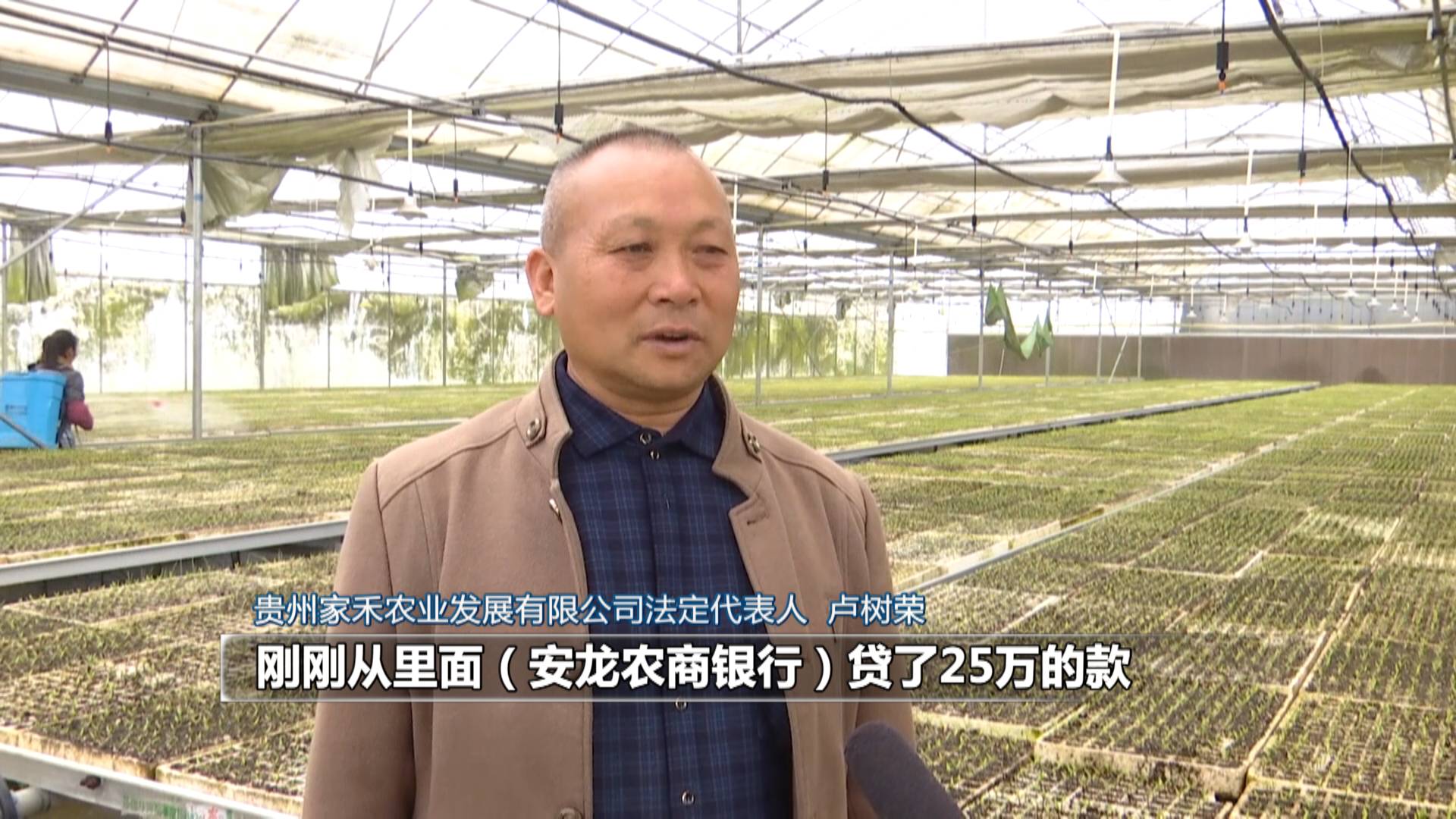 贵州家禾农业发展有限公司法定代表人 卢树荣:刚刚从里面安龙农商银行贷了25万的款, 拿过来以后在基地上基本上都得到正常的发挥,产业、育苗、工人工资等等,都可以解决这些问题。