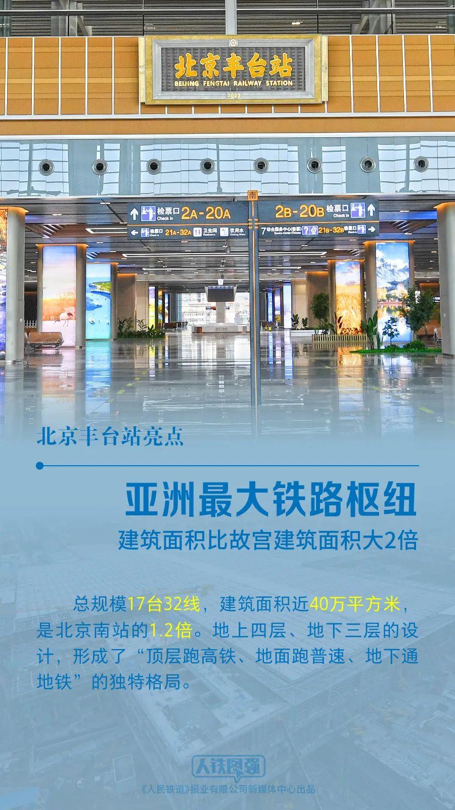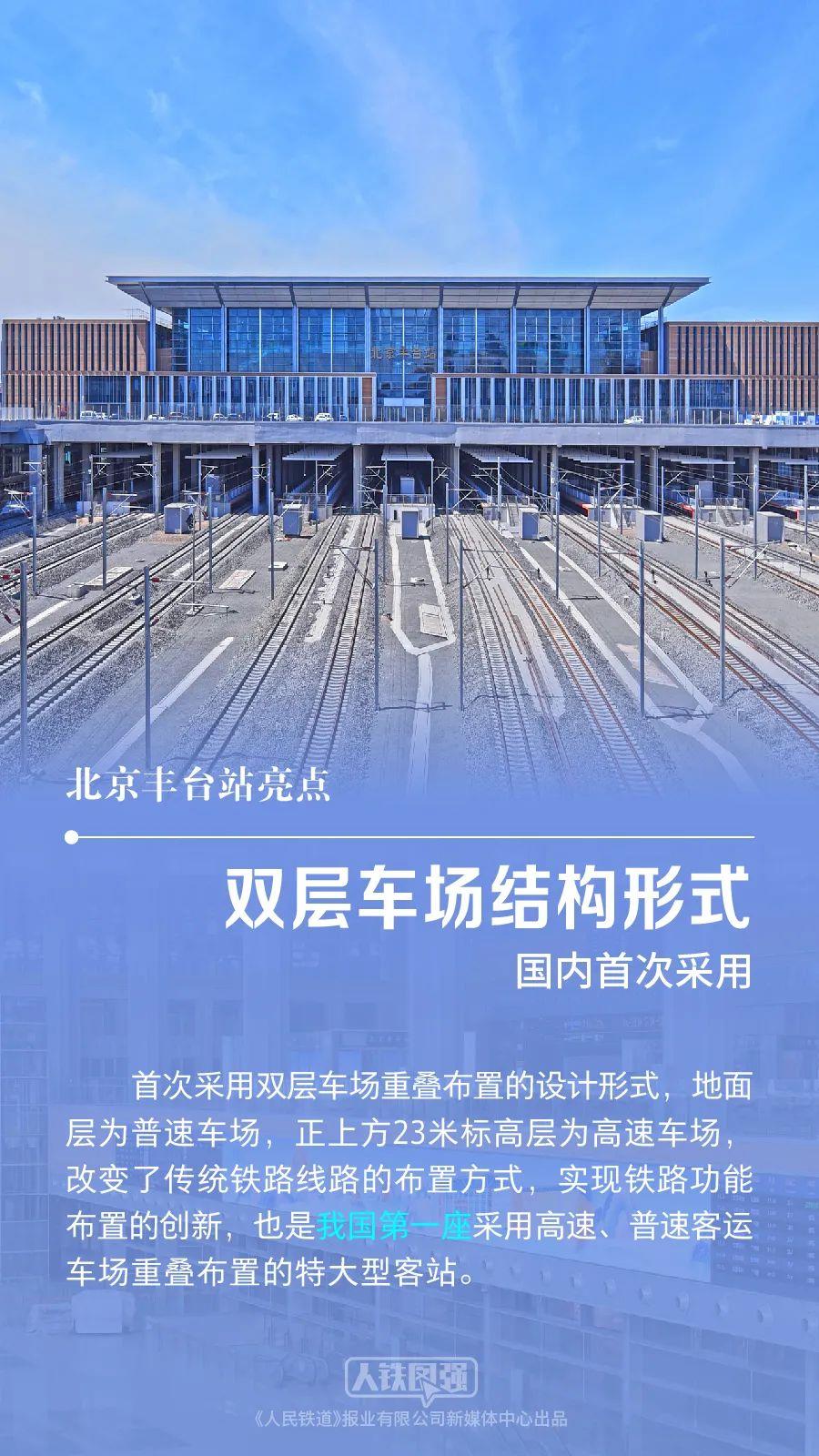 历时三年半建设,在北京西南三环外,这座新地标拔地而起。作为国内首座双层车场设计的大型车站、亚洲最大铁路枢纽客站,北京丰台站的站房采用地上四层、地下三层的布局,车场规模为17台32线。