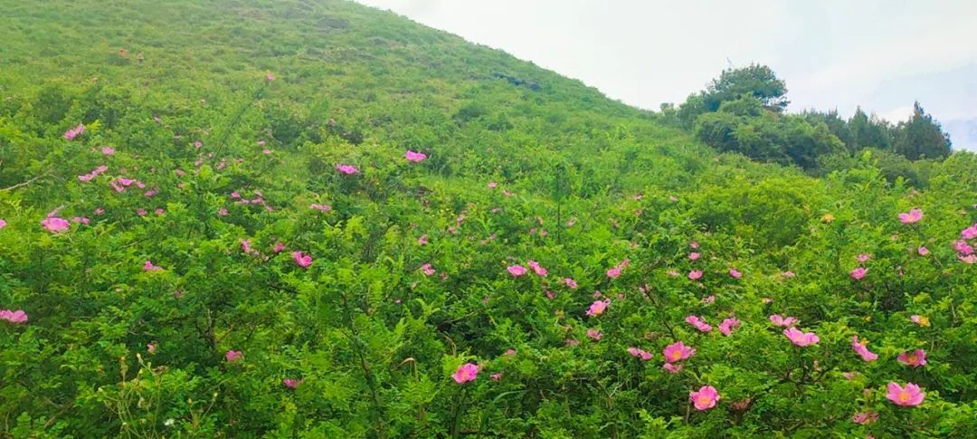 在遵义市播州区新民镇中心村烂田沟村民组刺梨基地,一簇簇刺梨树随风摇曳,一朵朵刺梨花竞相开放,放眼望去,玫粉色的刺梨花铺满山头,密密匝匝的粉色花点掩映在片片绿叶间。