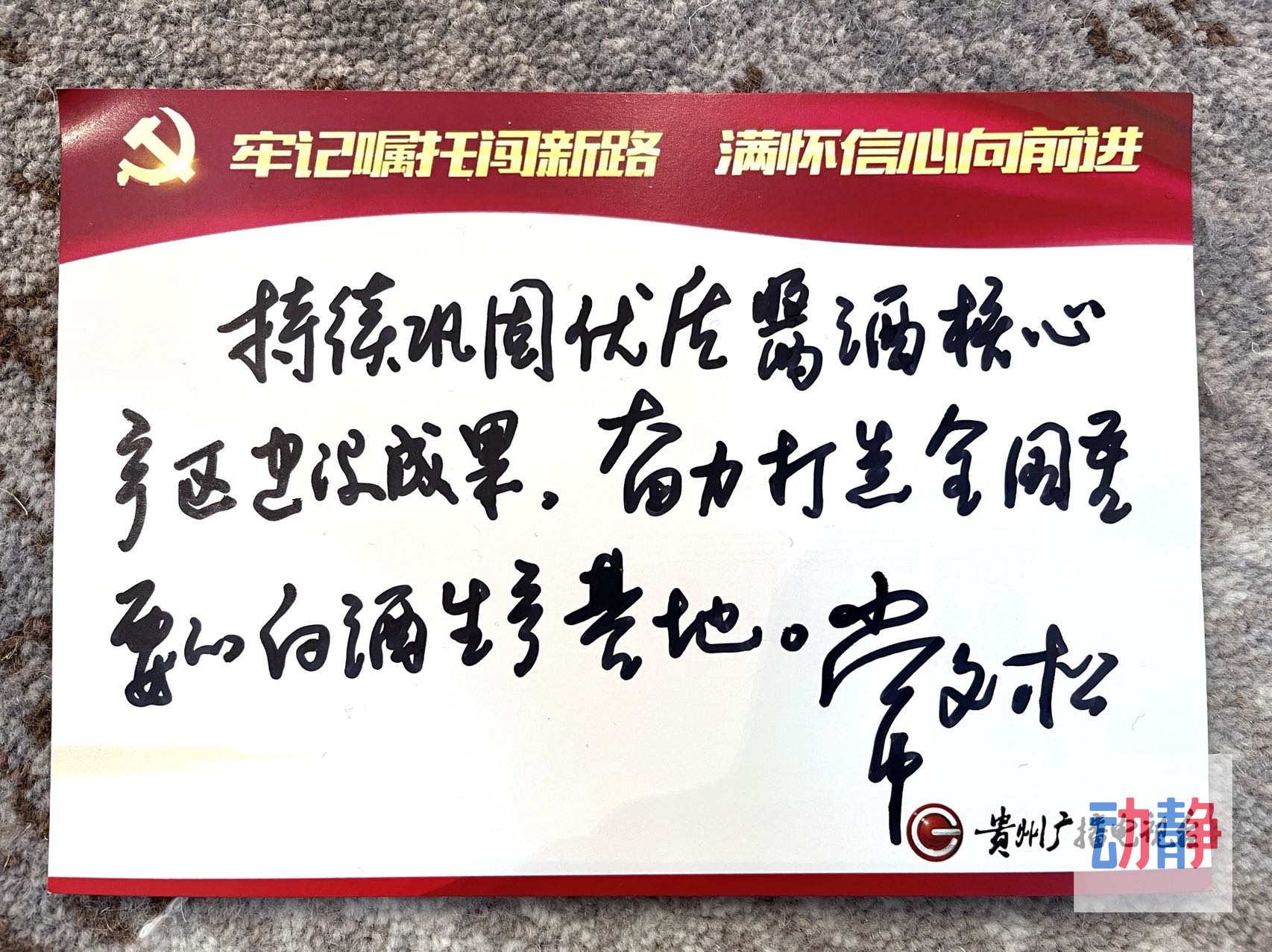 省党代会代表、习水县委书记常文松写下:“持续巩固优质酱酒核心产区建设成果,奋力打造全国重要的白酒生产基地。”