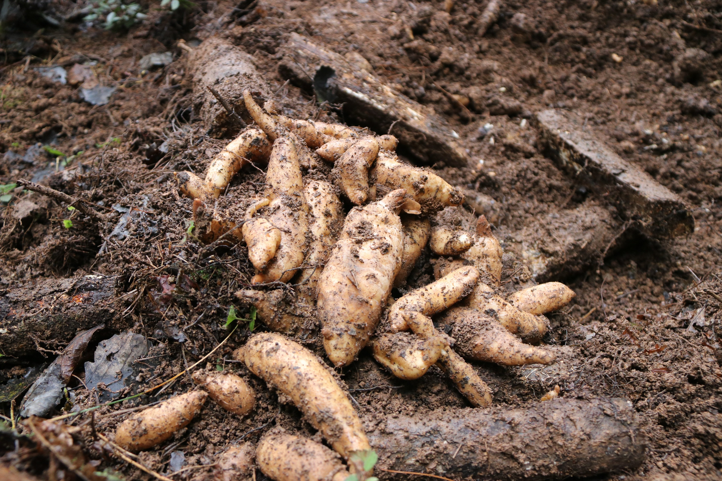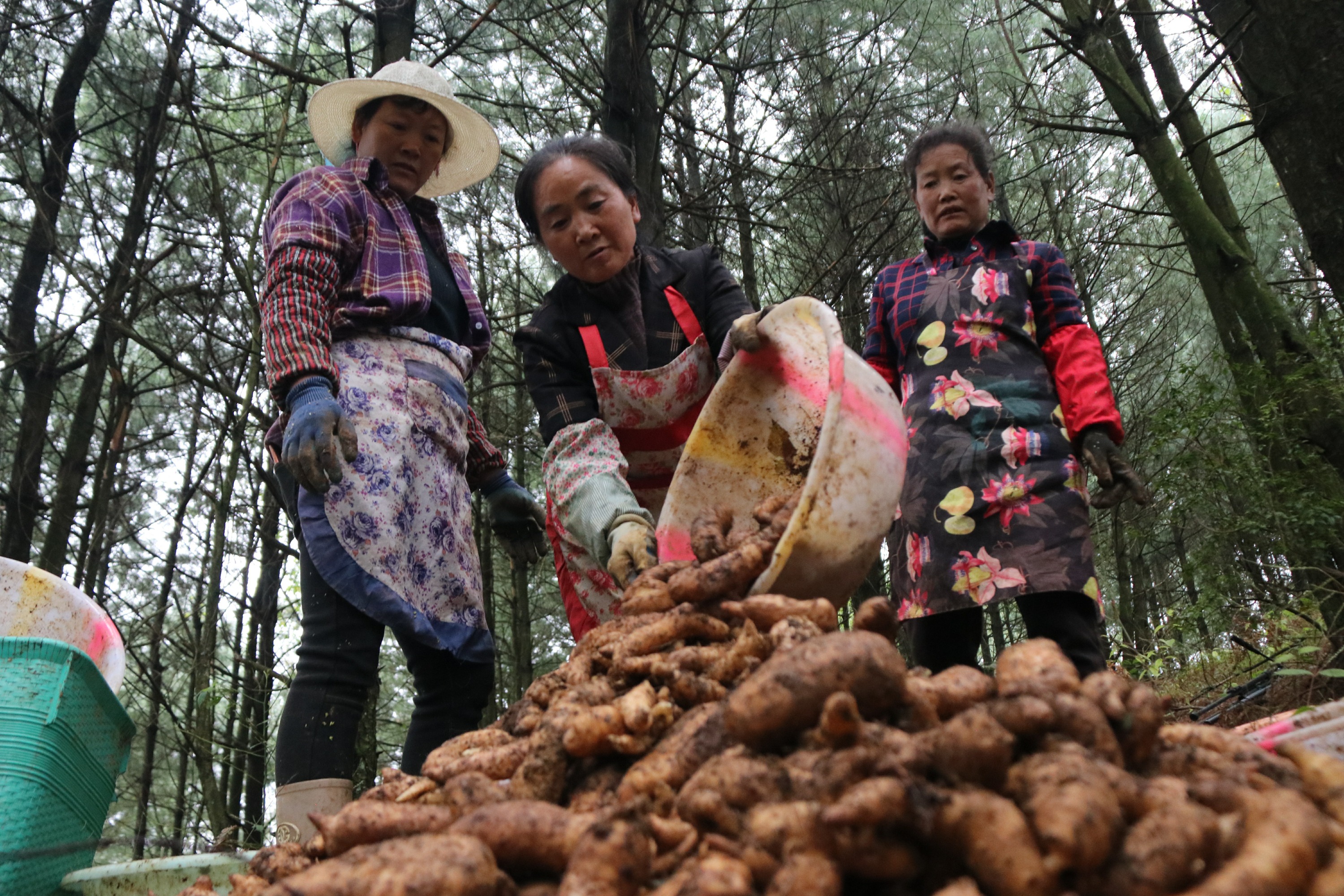 杨家湾镇营盘村林贝天麻繁育基地 李章发基地里的天麻 葛迪摄