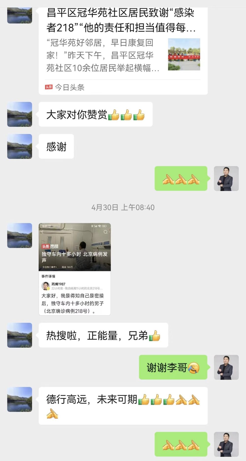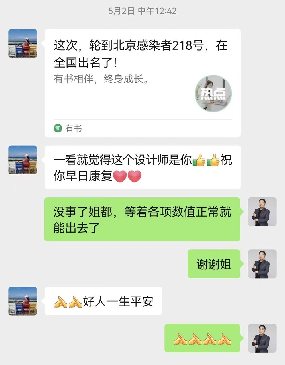 5月10日,经过14天住院治疗,因教科书般防疫而备受好评的“中国好邻居”张先生顺利康复出院,接下来他将在隔离酒店隔离观察7天。隔离观察期满后就可以正式回家。他所居住的昌平冠华苑社区居民同时也在积极策划欢迎仪式等待张先生归来。