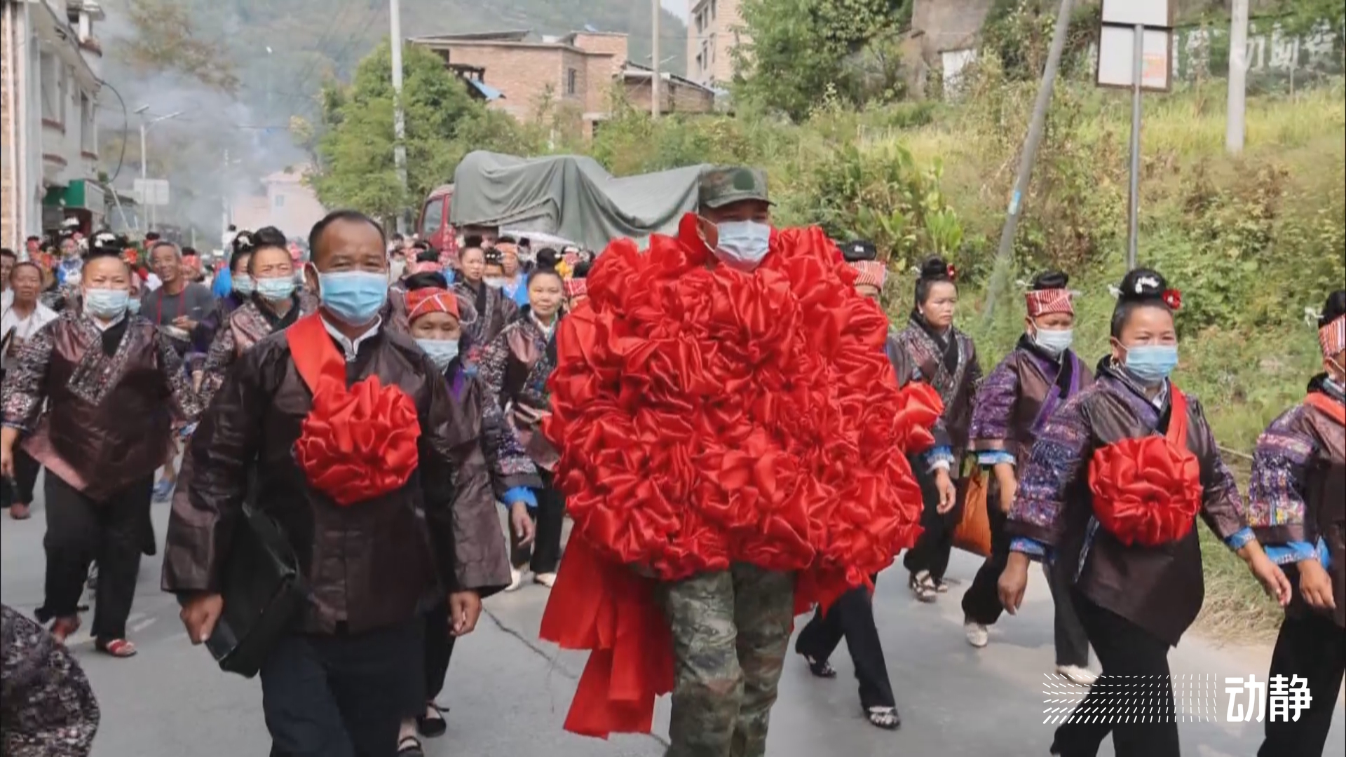 这段时间,贵州各地秋季应征入伍的青年正陆续启程,告别家乡与亲友,奔赴军营。黔东南州施秉县马号镇冰洞村的入伍新兵刘国保,在启程奔赴军营之际,被乡亲们送来的红花打包成了“花球”。