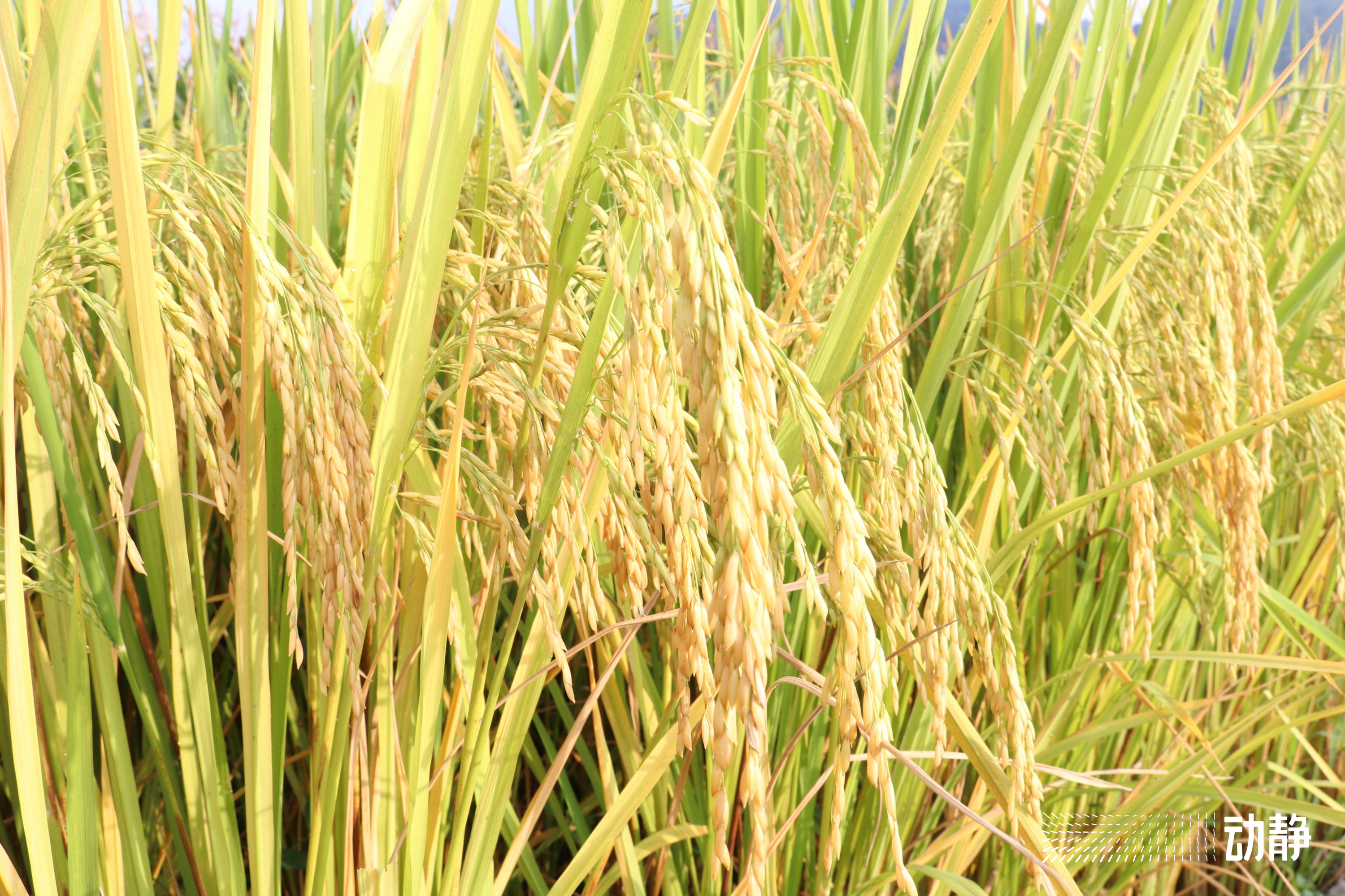 这两天,金沙县平坝镇的田野里一派丰收的景象,一串串饱满的稻穗挂在枝头,一阵风吹来,便掀起一阵阵金色的波浪。