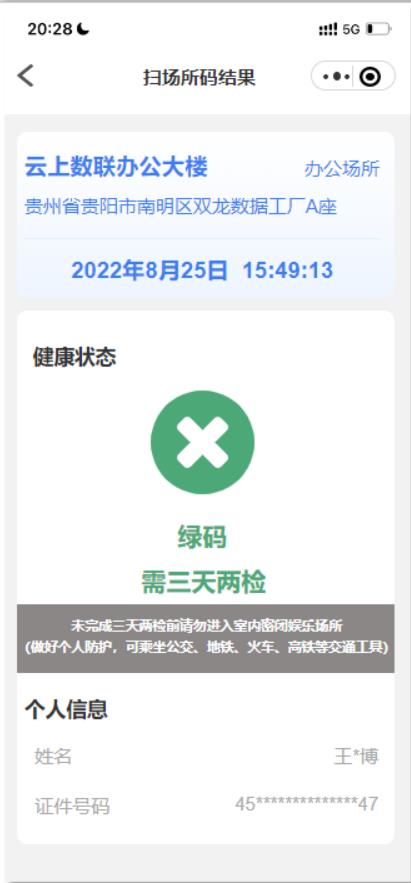 3.扫场所码显示“绿码、需三天两检”,可以有条件、有区别进入相关重点场所