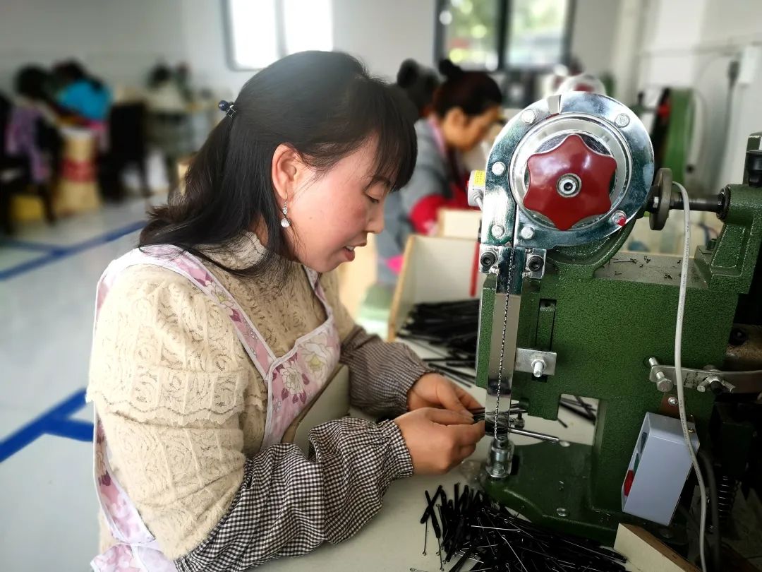 当记者走进贵州省安顺市平坝区安平街道塔南社区同心小区易地扶贫搬迁安置点伞骨加工帮扶车间时,伴随着一阵阵机器踩踏声,40多名工人正忙着加工伞骨,有的在打眼拼装,有的在分拣装袋……