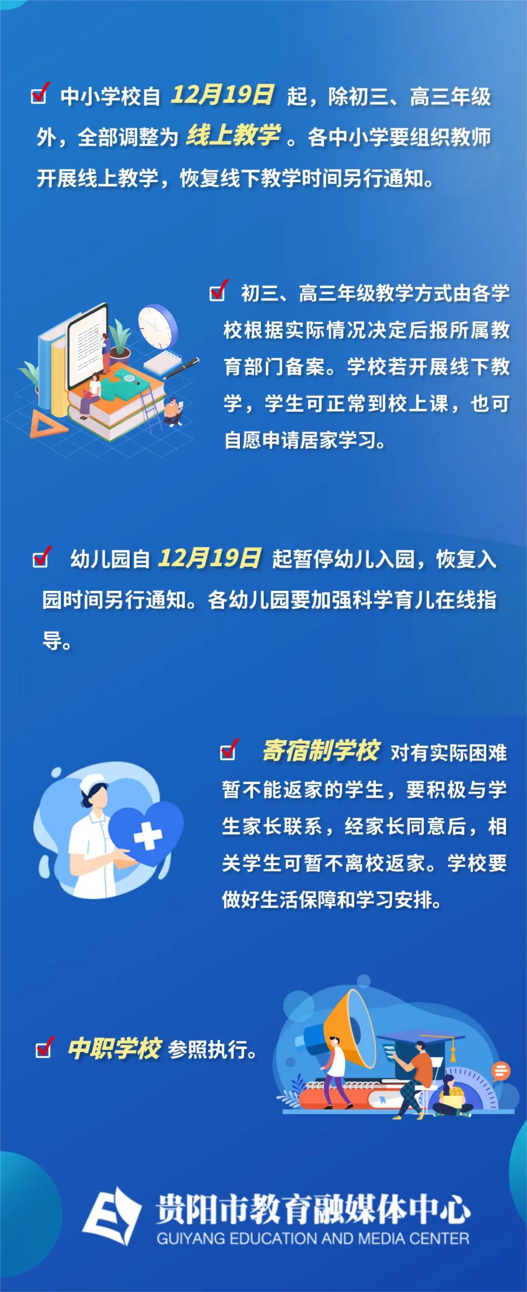根据当前疫情防控有关部署,结合全市中小学幼儿园实际,为切实保护广大师生生命健康安全,对全市教育教学工作做出调整: