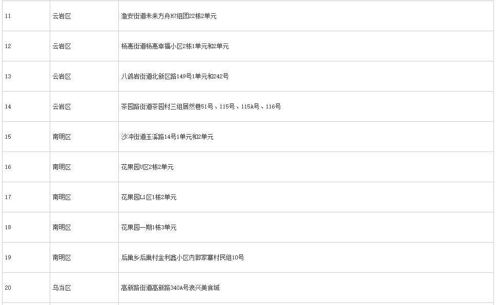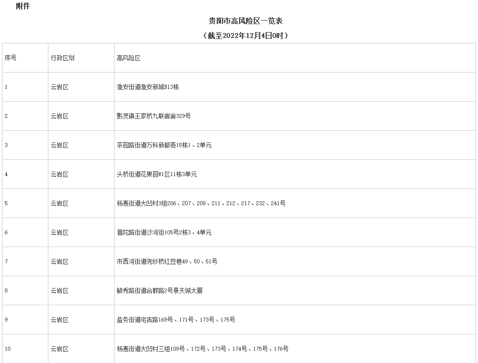 附件:贵阳市高风险区一览表(截至2022年12月4日0时)