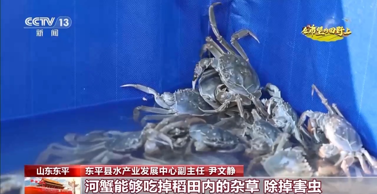 东平县水产业发展中心副主任 尹文静:稻蟹套养是稻渔综合种养的模式之一,在这个环境内,河蟹能够吃掉稻田内的杂草,除掉害虫,排泄物又能为水稻的生长提供肥料,然后形成一个良性的生态循环。