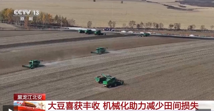 黑龙江北安:大豆喜获丰收 机械化助力减少田间损失