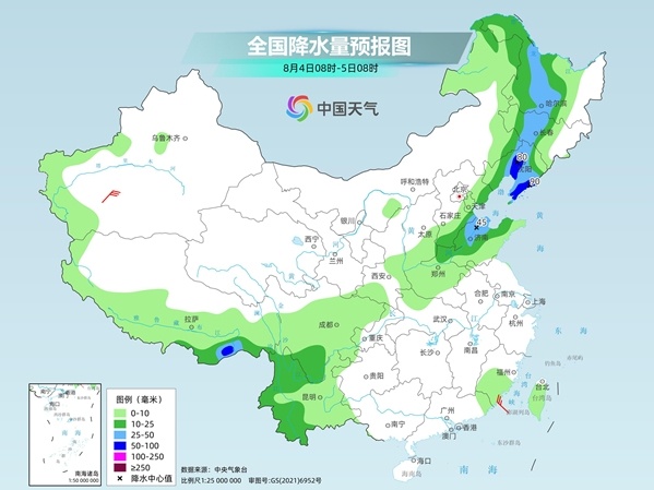 后天,内蒙古东北部、东北地区中西部和南部、西藏东部、黄淮北部、云南中西部等地部分地区有中到大雨,其中,辽宁中北部和南部、西藏东南部等地部分地区有暴雨(50~90毫米)。