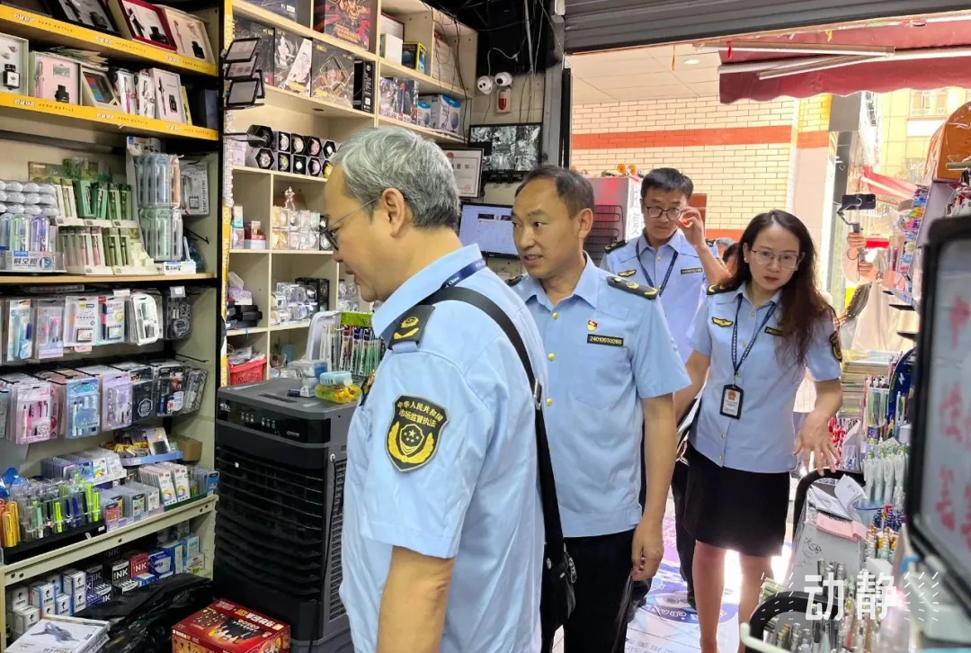 在南明区花果园片区,贵州省、贵阳市、南明区市场监管部门联合执法组对花果园第三小学、实验中学等校区周边便利店、文具店、杂货店等商铺开展排查,查处向未成年人销售“烟卡”、香烟等违法行为。