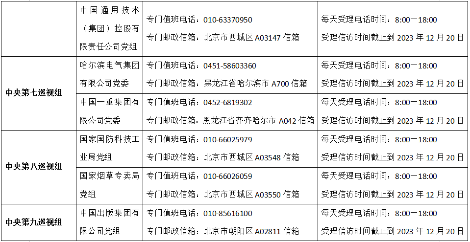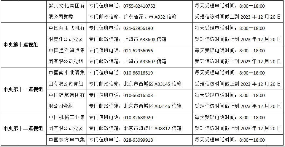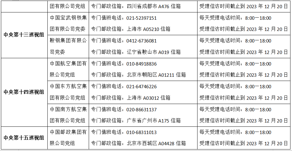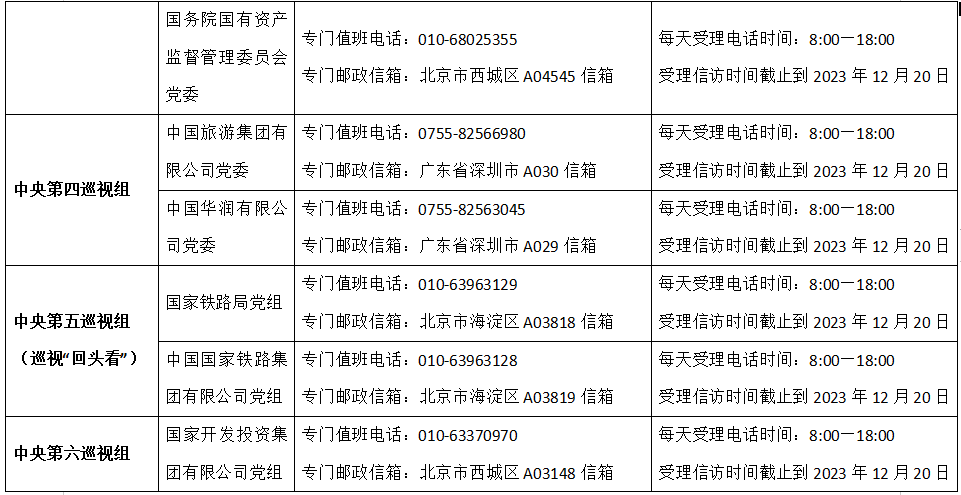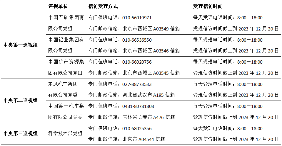 截至目前,中央巡视组已进驻32家单位,并公布了信访联系方式。