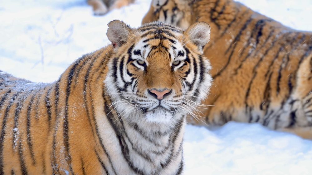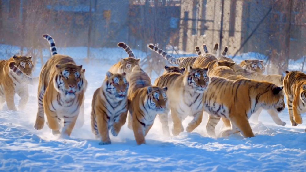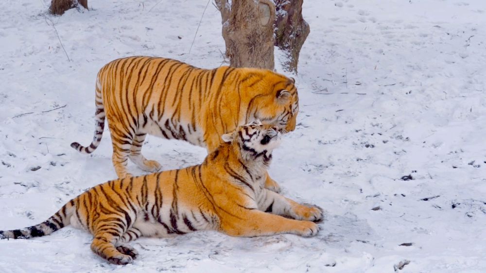 近日,位于哈尔滨市的黑龙江东北虎林园,东北虎在散放区的雪地上活动。游客乘坐专用观光车,可近距离感受东北虎的威武霸气。冬季观虎正当时,在皑皑白雪映衬下,东北虎的毛色更显鲜亮。同时,东北虎喜凉,冬季更加活跃。