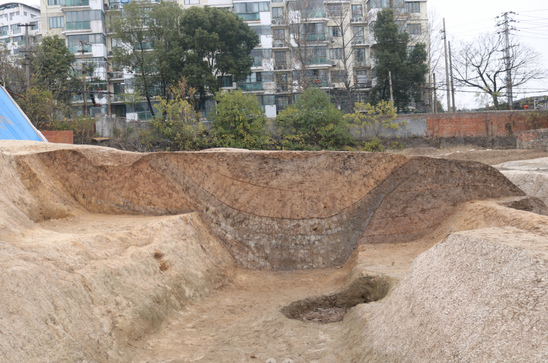 西街遗址考古项目负责人、南京市考古研究院副研究馆员陈大海介绍说,主动性考古发掘中,遗址地块北部一处台地最先呈现,台地边缘的文化层和遗迹遗物最为丰富,东缘环状壕沟保存较好,发现了至少四道商周不同时期的环壕。“在古代防御设施中,壕的出现比城更早。以城墙与壕沟相配合的防御体系,是古代城池的重要标志。”陈大海透露,台地东北部一段墙基遗迹清晰可见,墙基东侧约10米处,还发现一条与墙基走向相同的壕沟局部,这段墙与壕的组合,成为此处曾筑城的又一实证。