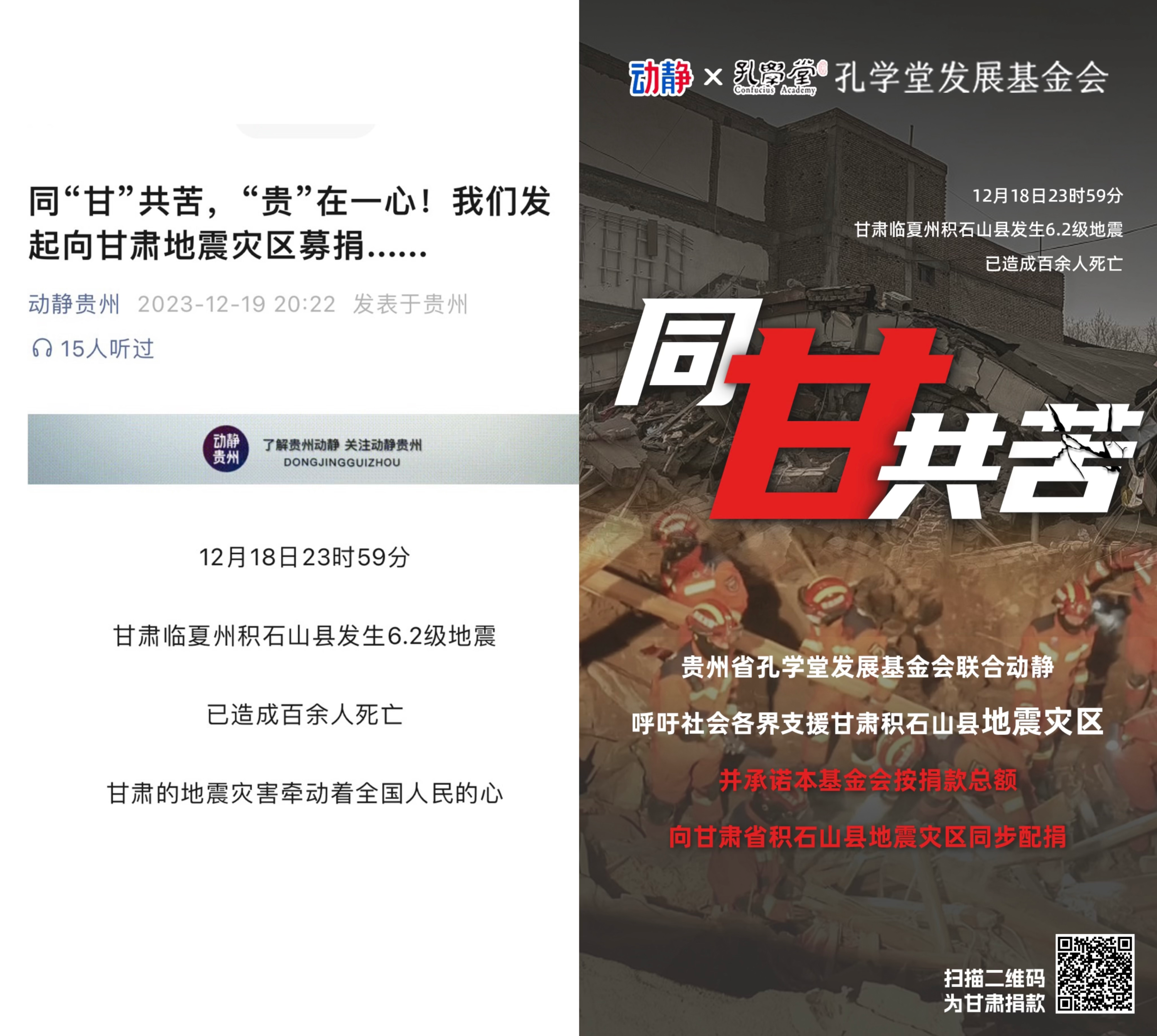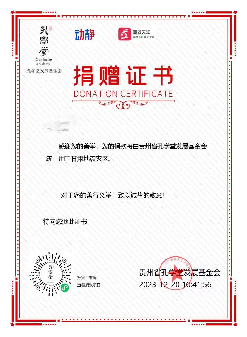 向甘肃省积石山县地震灾区同步配捐