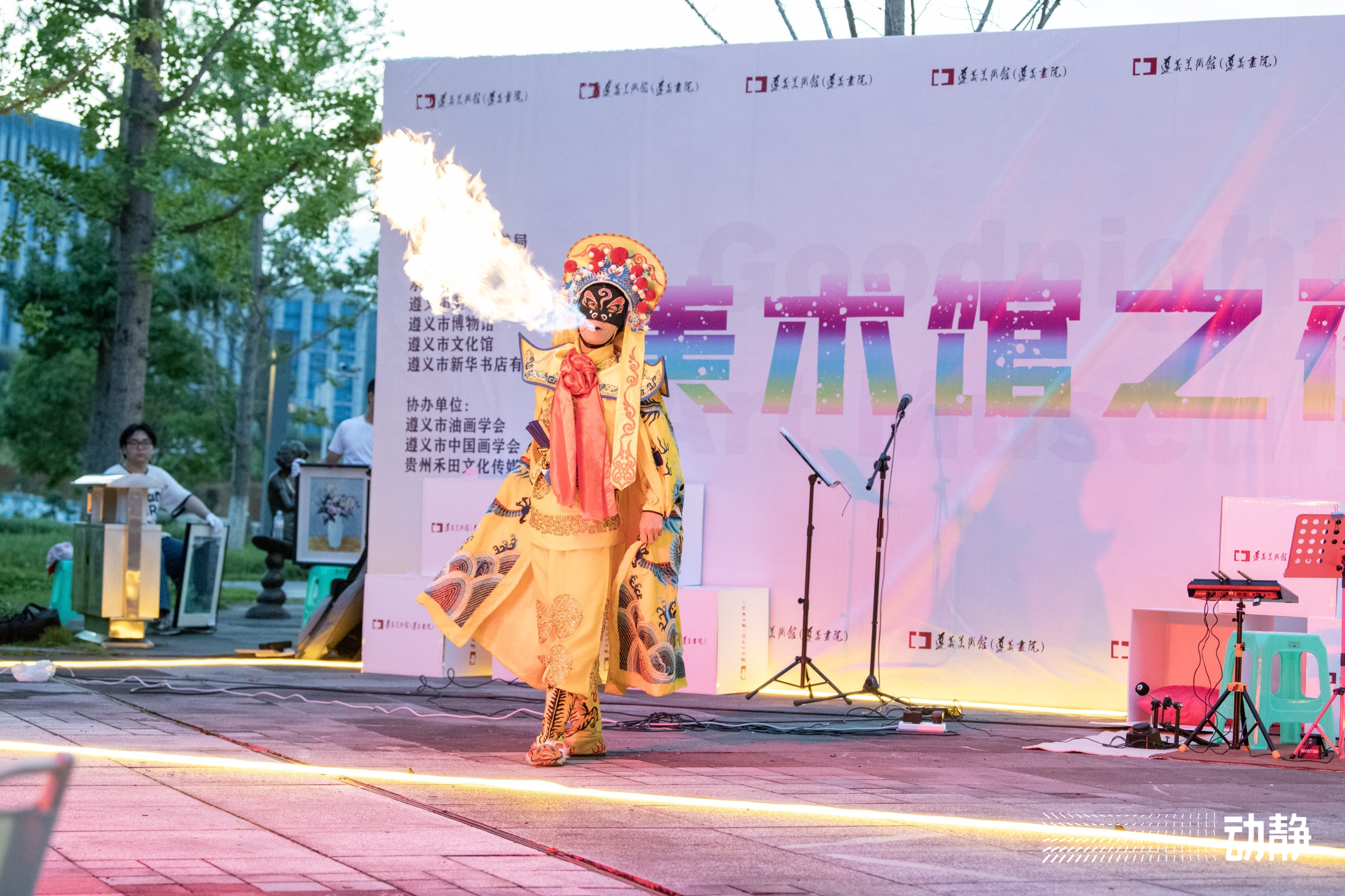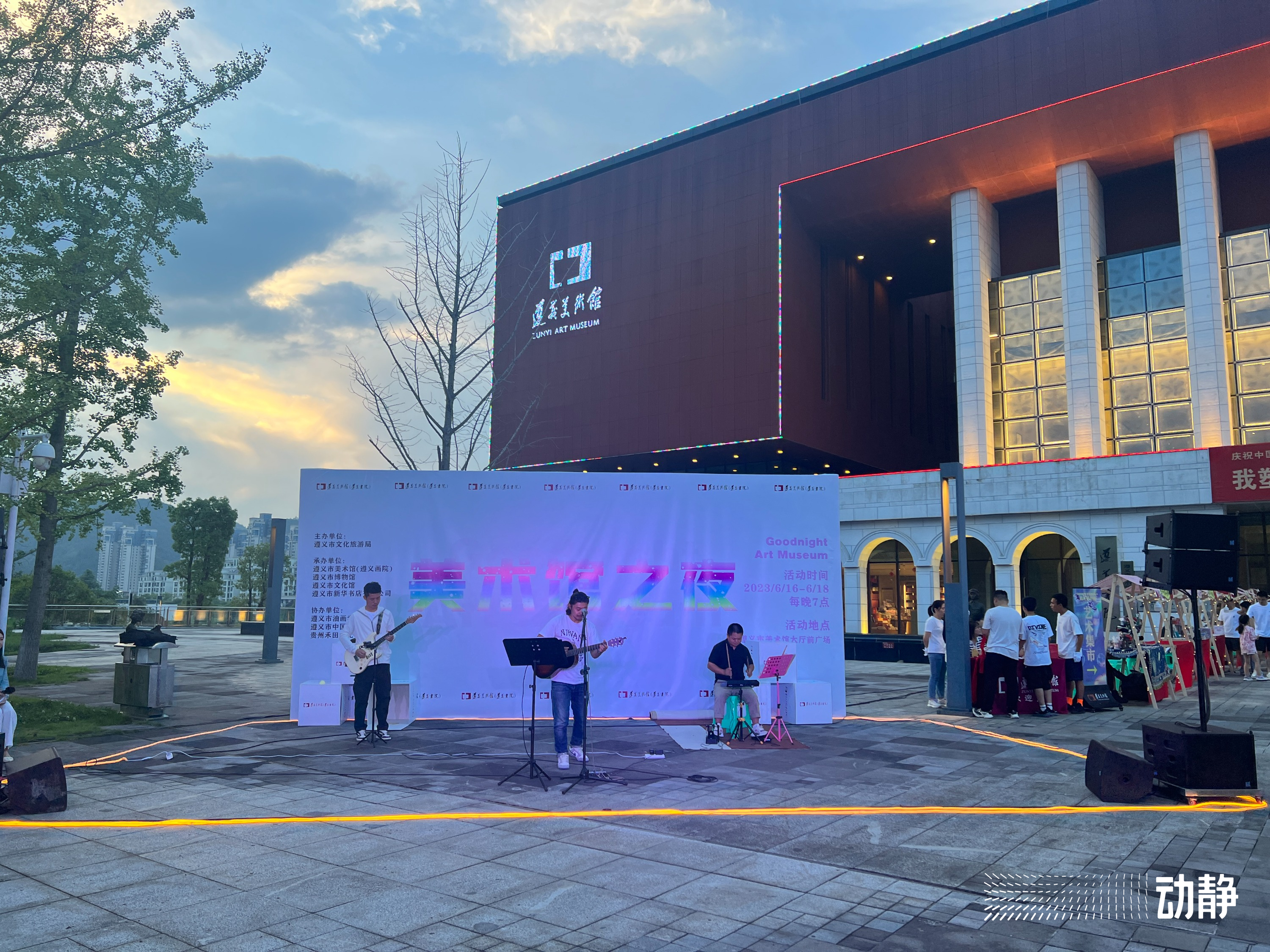 这奇妙的组合,就是遵义市正在开展的“Goodnight,美术馆”——美术馆之夜,在作为城市艺术会客厅的美术馆,为文化艺术交流搭建新平台,让市民及游客即能在展馆内观赏名家雕塑作品,又能在艺术集市里感受生活中的烟火气息,通过文艺演出与展览欣赏沟通情感、增进相互了解。