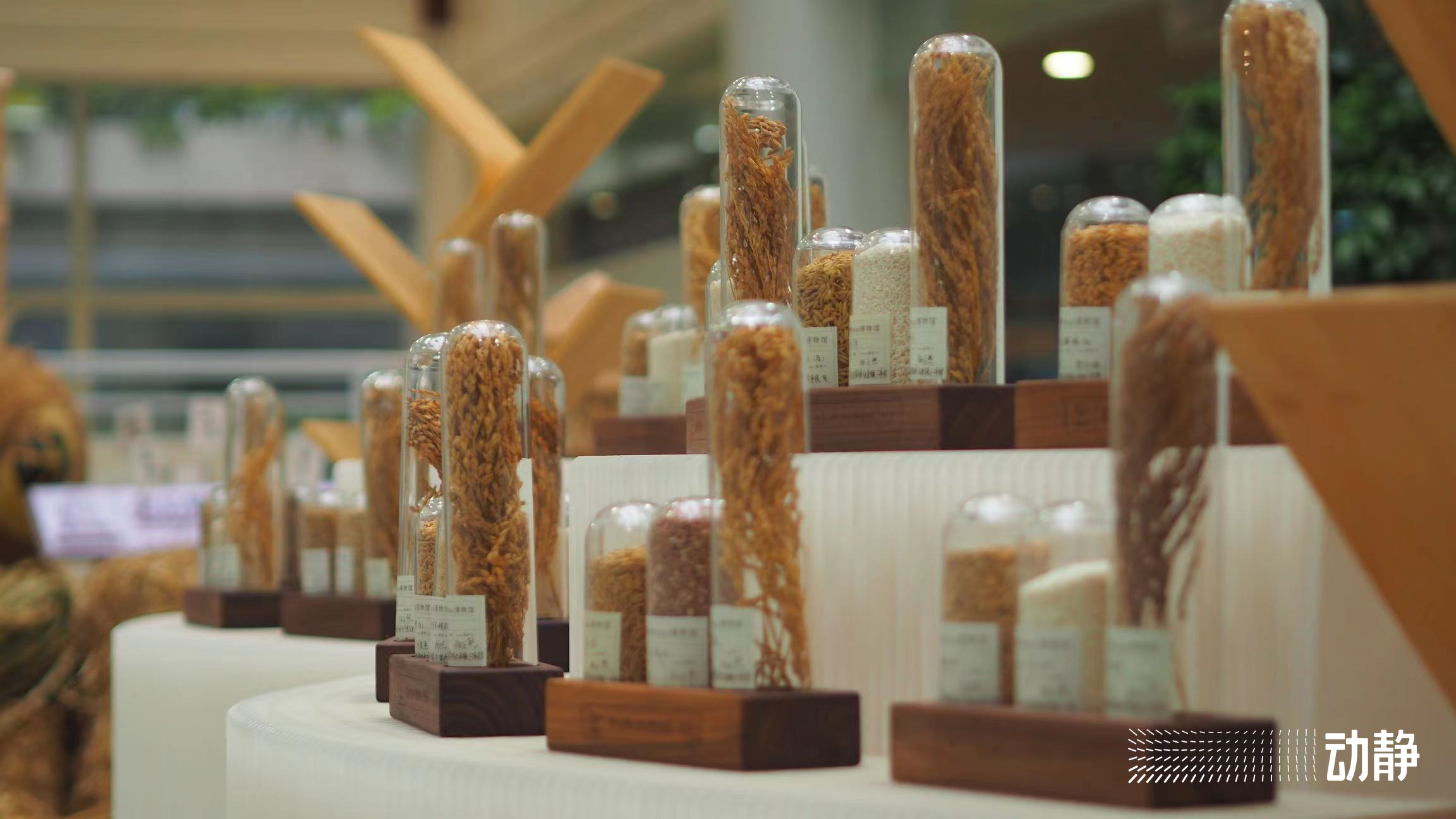 老稻种MINI博物馆设置于贵州省图书馆南馆的2楼展厅,这里展示了包括香禾糯、红花稻、高坡红米等40多个来自贵州各地的原生老稻种。高低有序的玻璃瓶中,展示着从禾把、稻穗,再到米粒的不同形态,玻璃瓶如同时光胶囊,述说着千百年来沉淀在贵州的稻作文化历史。