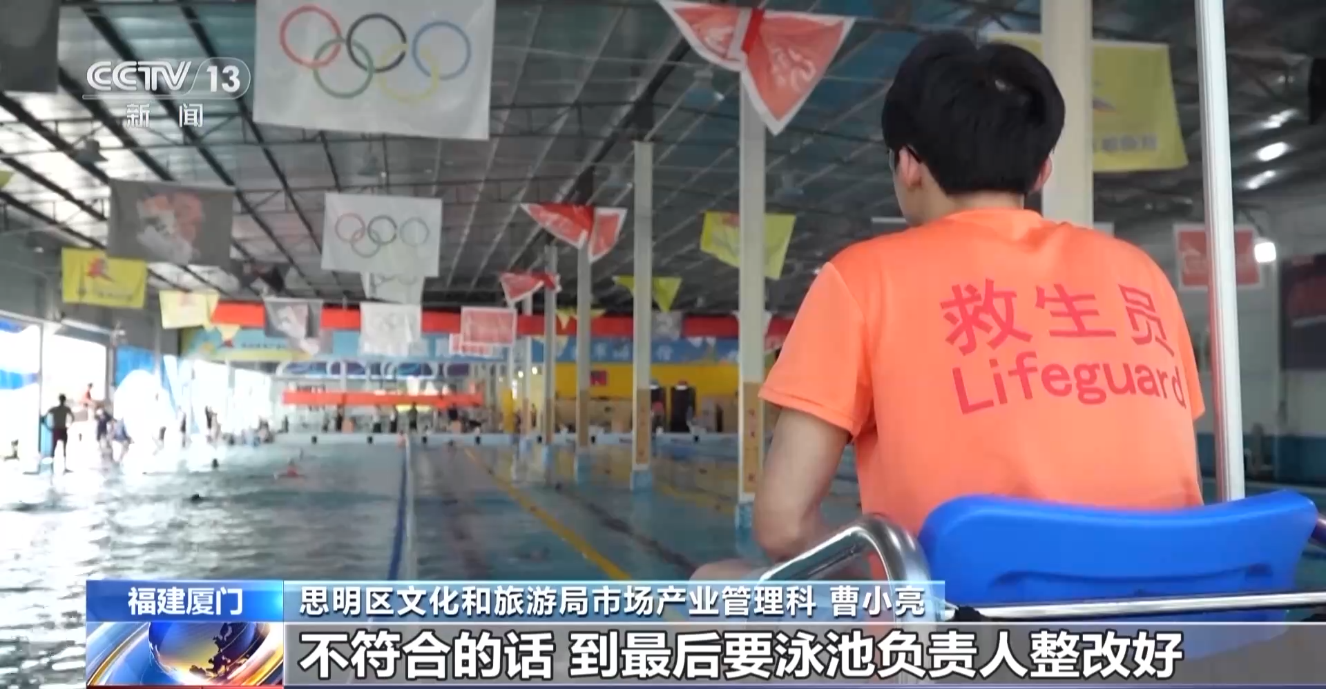 思明区文化和旅游局市场产业管理科 曹小亮:我们要认准,一定要去有证的、合法经营的泳池游泳,如果群众发现一些泳池救生员不足,或者其他安全隐患,可以向我们反映。