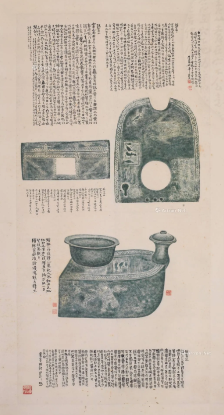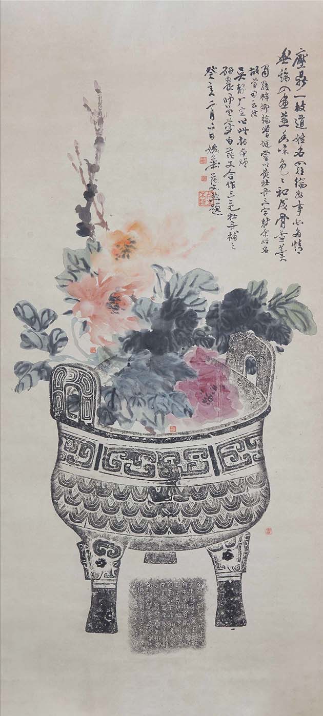 姚华 (1876-1930),宇重元,别字一鄂,号茫父。贵州贵筑 (今贵阳) 人。清光绪丁酉科 (1897)举人、甲辰科(1904)进士,旋公派日本习法政。1907年归国,由工部改派邮传部任主事、科长。入民国后,几度参政议政并参与中华民国首部宪法编墓。后弃政从学,先后执教于清华学堂、国立美专等校,是著名的诗人、学者、教育家、文学家、金石学家、书画家和戏曲理论家,被誉为一代通人,于颖拓、刻铜、笺纸等艺术形式皆有特别贡献,被鲁迅、郭沫若等人盛赞。