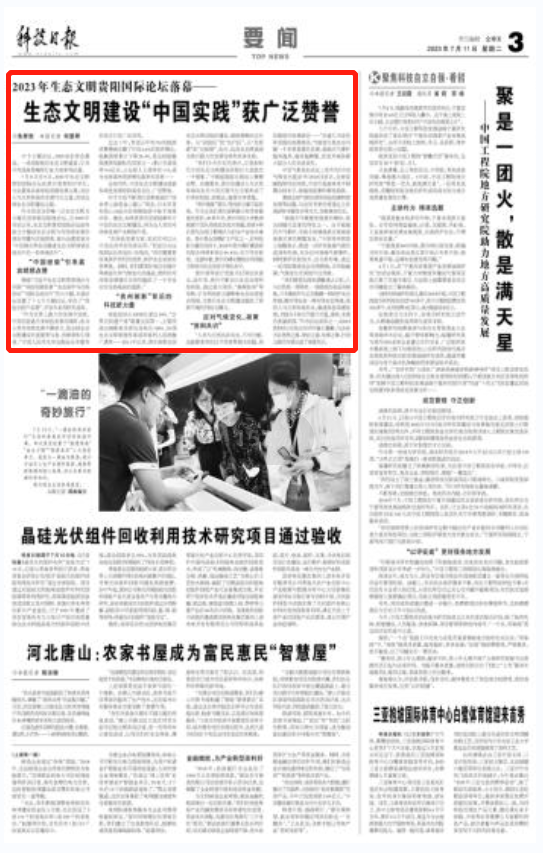 7月8日至9日,2023年生态文明贵阳国际论坛在贵州省贵阳市举行。与会嘉宾共商绿色低碳发展之策,共论人与自然和谐共生现代化之道,共谋全球生态文明建设之路。