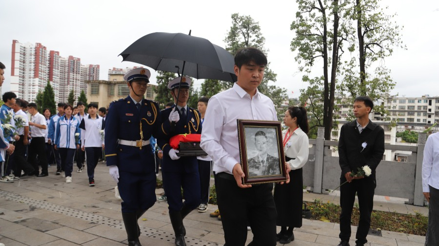 “今天我来参加这个安葬仪式,代表我们全体居民来送他。”修文县龙场街道翠屏居委会党支部书记范莉莎带着沉重的心情说,“郭伟从小积极向上,他有一个志向就是长大要参军,保家卫国。我想对他说,他做到了,是修文儿女的骄傲、是修文儿女的榜样,英雄,一路走好。”