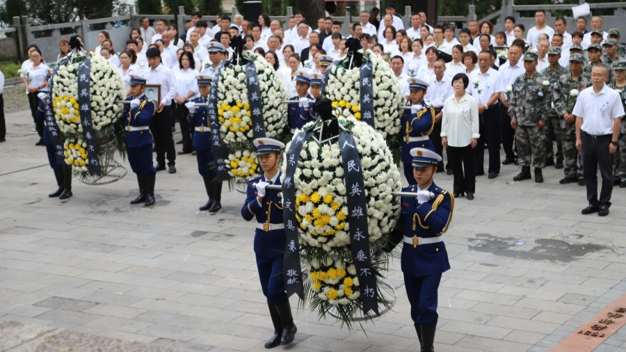在当天的安葬仪式中,修文县委、县人大常委会、县政府、县政协及各相关单位还分别向郭伟烈士敬献花篮,前来参加安葬仪式的社会各界人士排起长队,向烈士墓碑敬献鲜花,送别英雄。