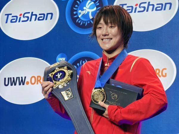 当地时间9月19日,2023摔跤世锦赛在贝尔格莱德举行女子自由式59公斤级比赛,中国选手张骐获得金牌,这也是中国摔跤队在本届世锦赛的首枚金牌。