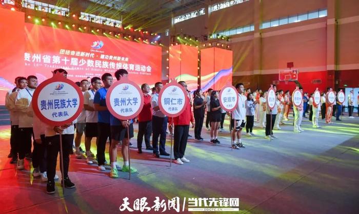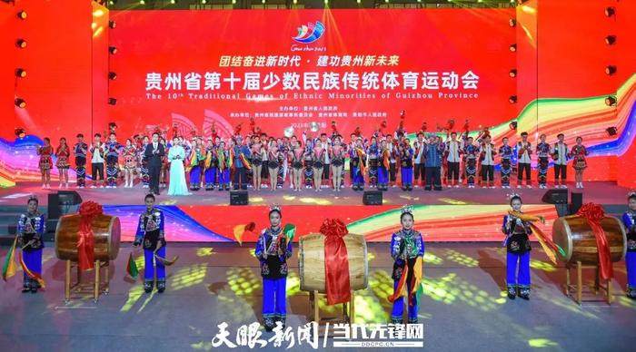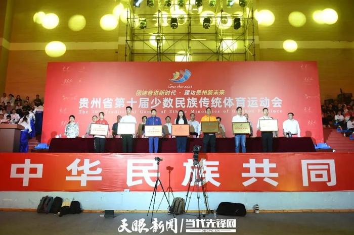 6月16日下午,贵州省第十届少数民族传统体育运动会闭幕式在贵阳康养职业大学体育馆举行。运动会相关负责人,嘉宾,运动员代表,以及观众等参加仪式。