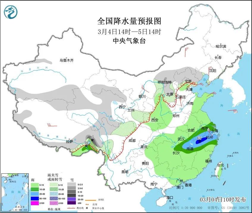除了降温,受此轮冷空气影响,4日至6日,中东部还将迎来大范围雨雪天气,其中4日至5日为降水核心时段,江淮南部、江南东北部等地部分地区有大到暴雨。