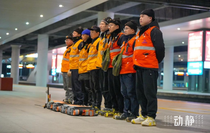 26日凌晨,贵阳北站一支贵电队伍整齐集结,由工长唐仁武带队对沪昆场信号设备进行检查。深夜,气温极低,唐仁武和4名作业人员严格按标准对道岔、轨道电路等进行检查,试验并查看道岔融雪装置运行情况,全力确保凝冻天气下电务设备安全,为贵阳北站“陆地航母”顺利开行保驾护航。