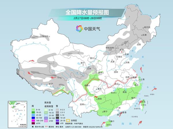 今天(2月27日),我国华北北部、东北等地有降雪出没,南方仍有较大范围阴雨天气,普遍以小雨为主。明后天,我国中东部地区雨雪将增多,西北地区东部、黄淮等地有小到中雪,江南等地部分地区有大雨,局地暴雨,需注意防范雨雪天气对春运出行的不利影响。气温方面,我国大部地区气温偏低的状态将延续至3月初,3月2日至3日,北方到长江中下游大部地区气温才会明显回升。