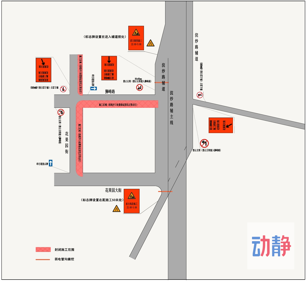 三、由浣纱路前往花果园街、狮峰路的车辆请经花果园大街按照顺时针方向通行;