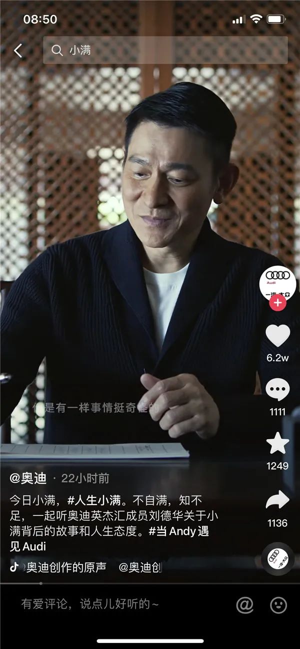 奥迪与刘德华合作的视频火了后,拥有300多万粉丝的抖音用户“北大满哥”在该视频评论区留言称,视频文案几乎整篇都是截取自他去年“小满”时发布的作品,里面的诗词也是他的原创。