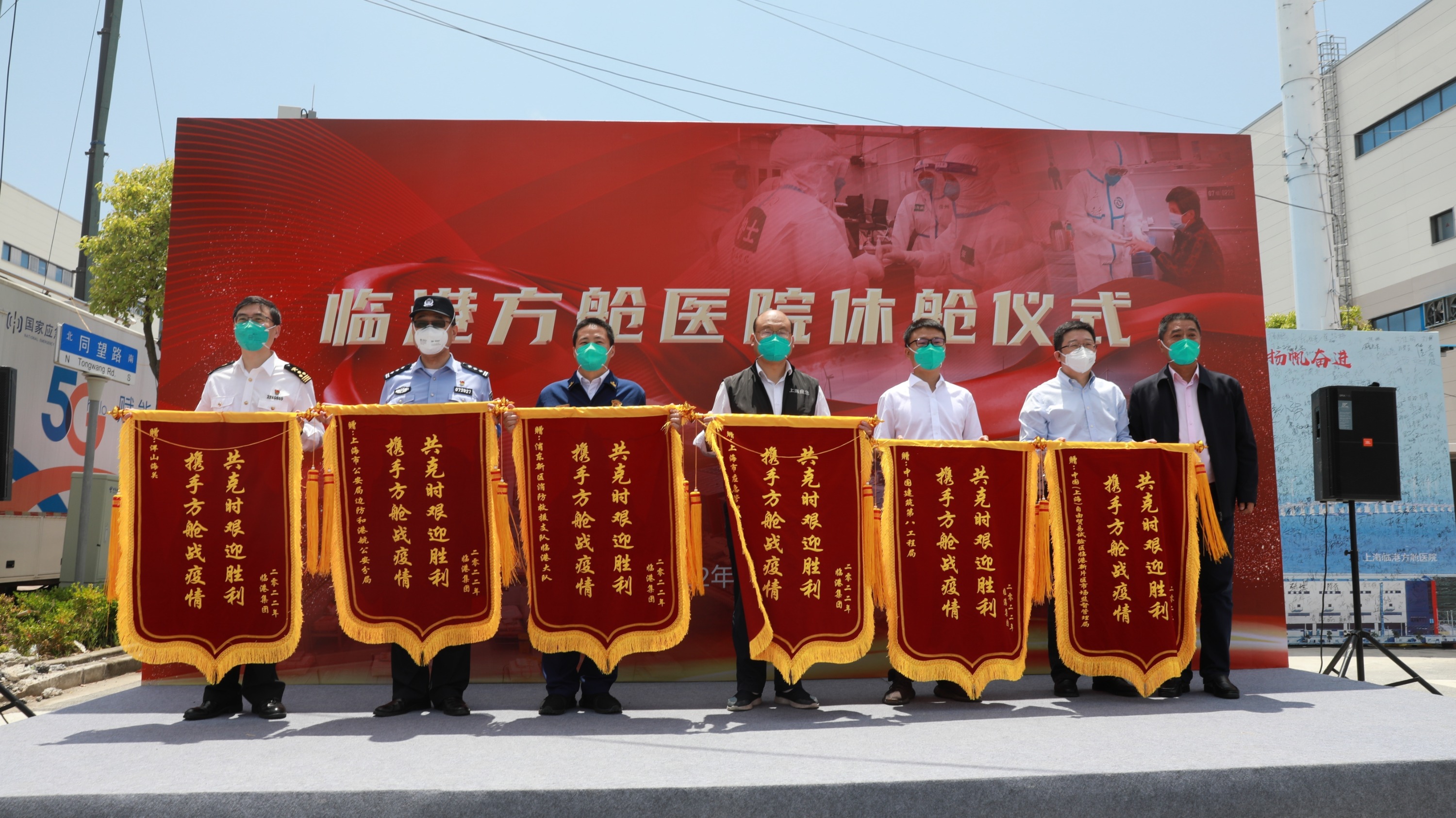 5月21日上午,位于东海之滨的市级大型方舱医院——上海临港方舱医院举行休舱仪式。6名医疗队领队报告完毕后,临港方舱医院院长、复旦大学附属华山医院副院长马昕宣布上海临港方舱医院正式休舱,与6名医疗队队长、2名临港集团前线指挥长共同为舱区大门贴上“休舱”封条。